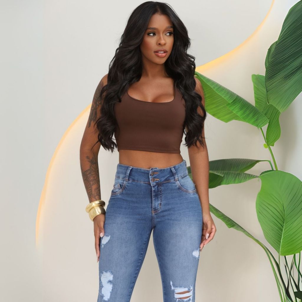 1448 - Calça Jeans Feminina Skinny Pala Coração Cintura Média Destroyed Dois Botões Carmen Carmenere