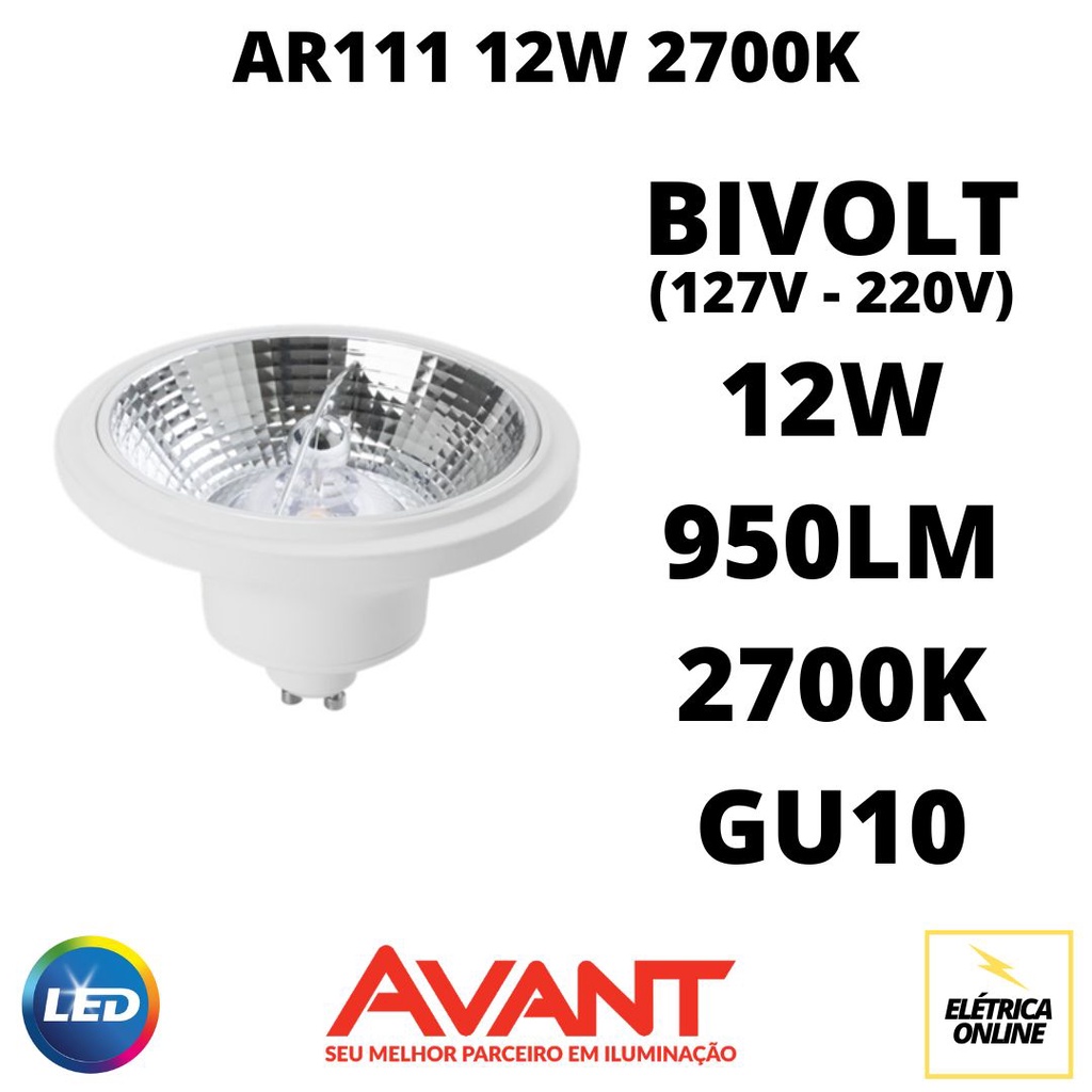 KIT 05 Lâmpada LED AR111 12W 2700K QUENTE GU10 - AVANT