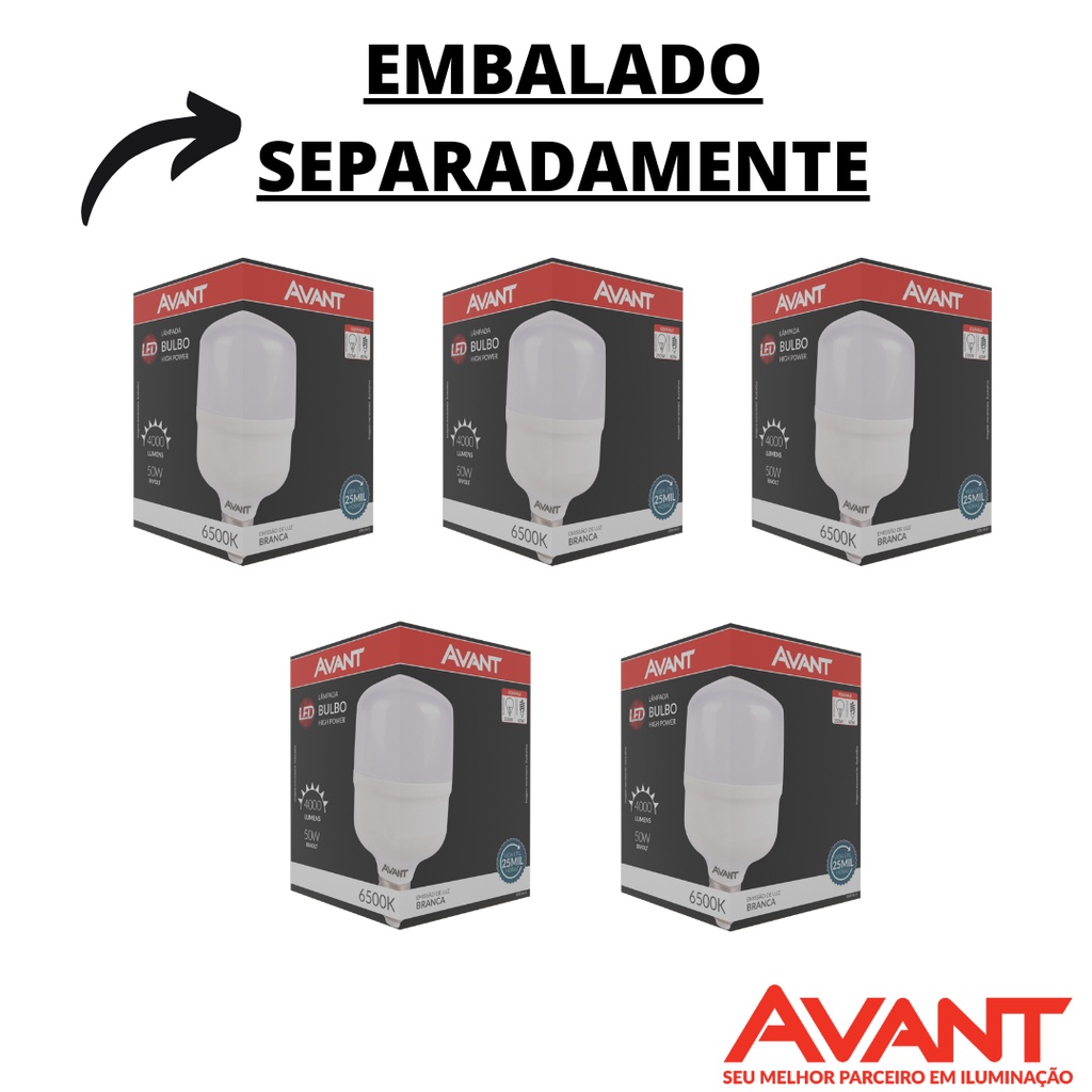 KIT 5 Lâmpada LED Bulbo 50w Alta Potência E27 - AVANT