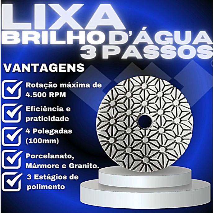 Lixas Brilho D Água Diamantada Três Passos Polimento Granito Mármore Porcelanato