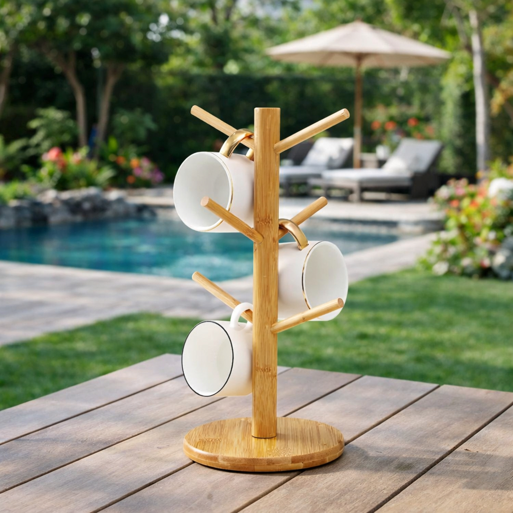 Suporte Porta Xícaras Organizador Copos Canecas Xícaras Chá Café Bambu Madeira ENVIO IMEDIATO