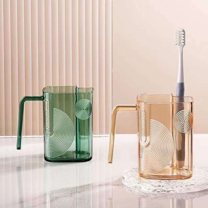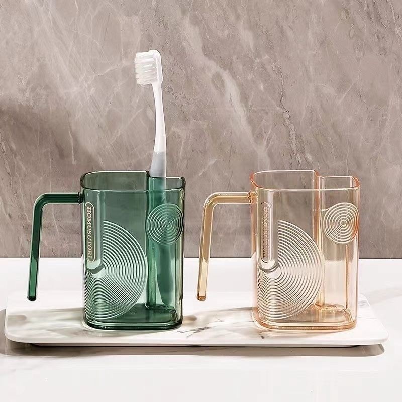 Escova de dentes transparente antibacteriana e copo de armazenamento para enxaguatório bucal