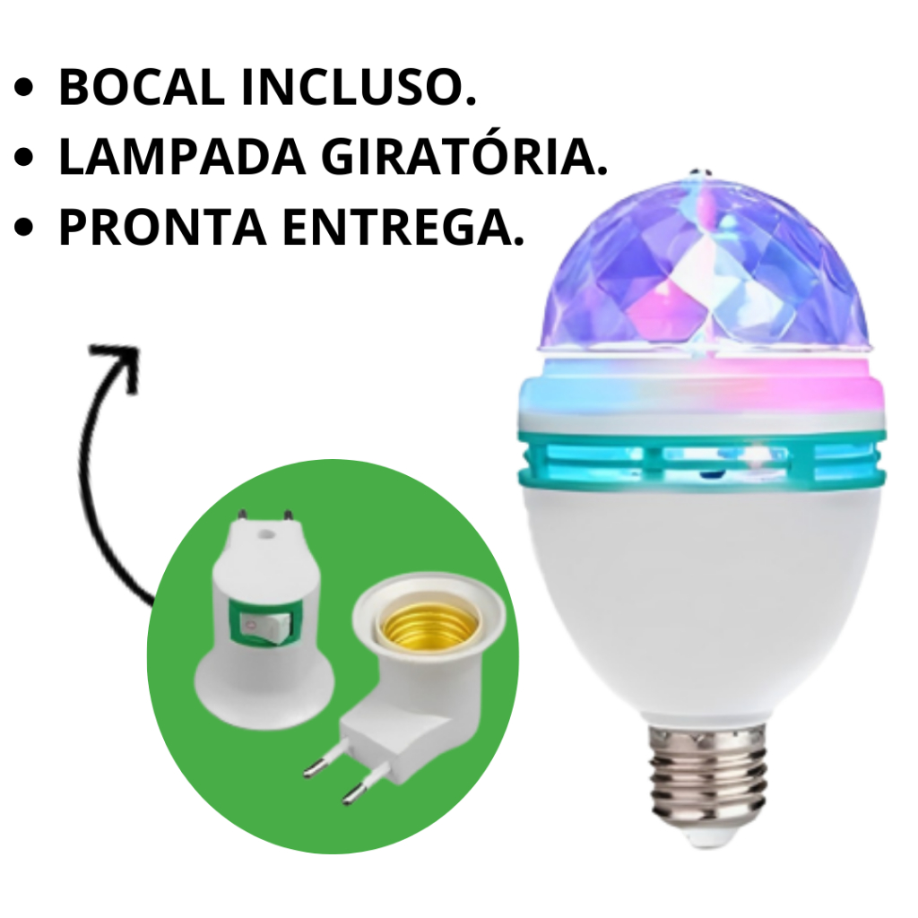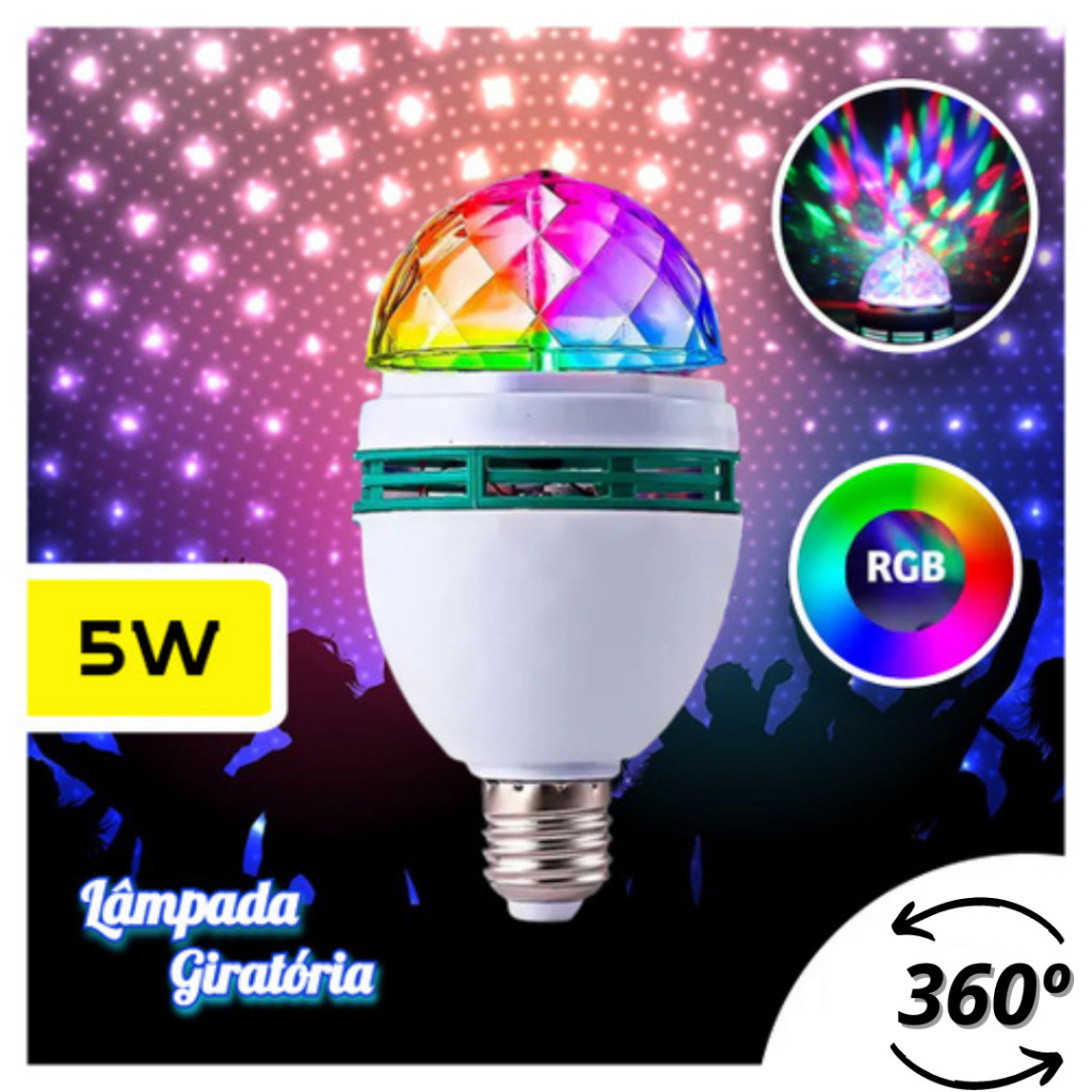 Lâmpada Led Giratória Colorida Globo De Luz Festa + Soquete SU Bucal