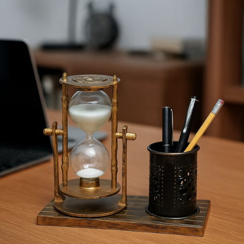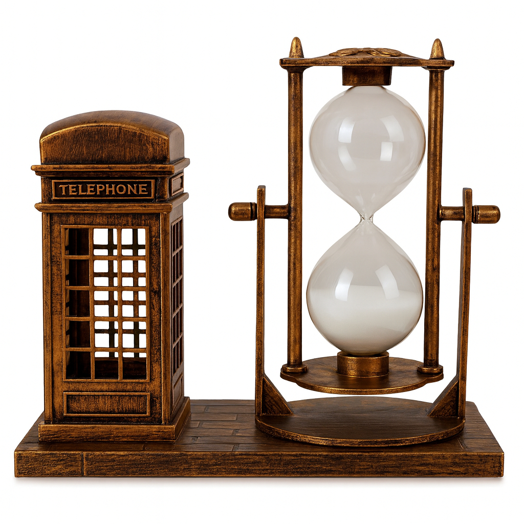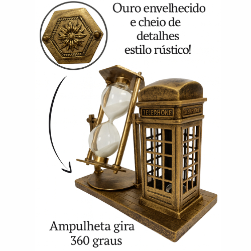 Decoração Cabine Telefônica de Paris Com Ampulheta 15cmX12cmX7cm