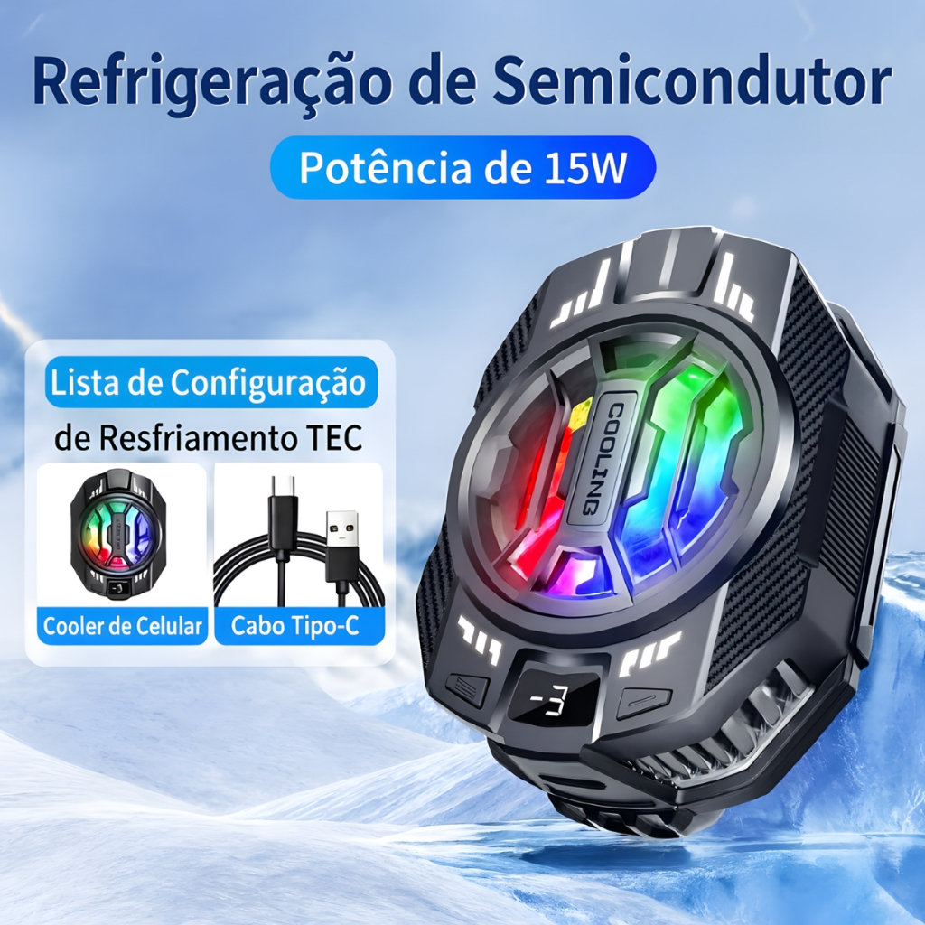 Cooler Celular Gamer Placa Peltier Gela De Verdade RGB Resfriador Free Fire PUBG COD Mobile