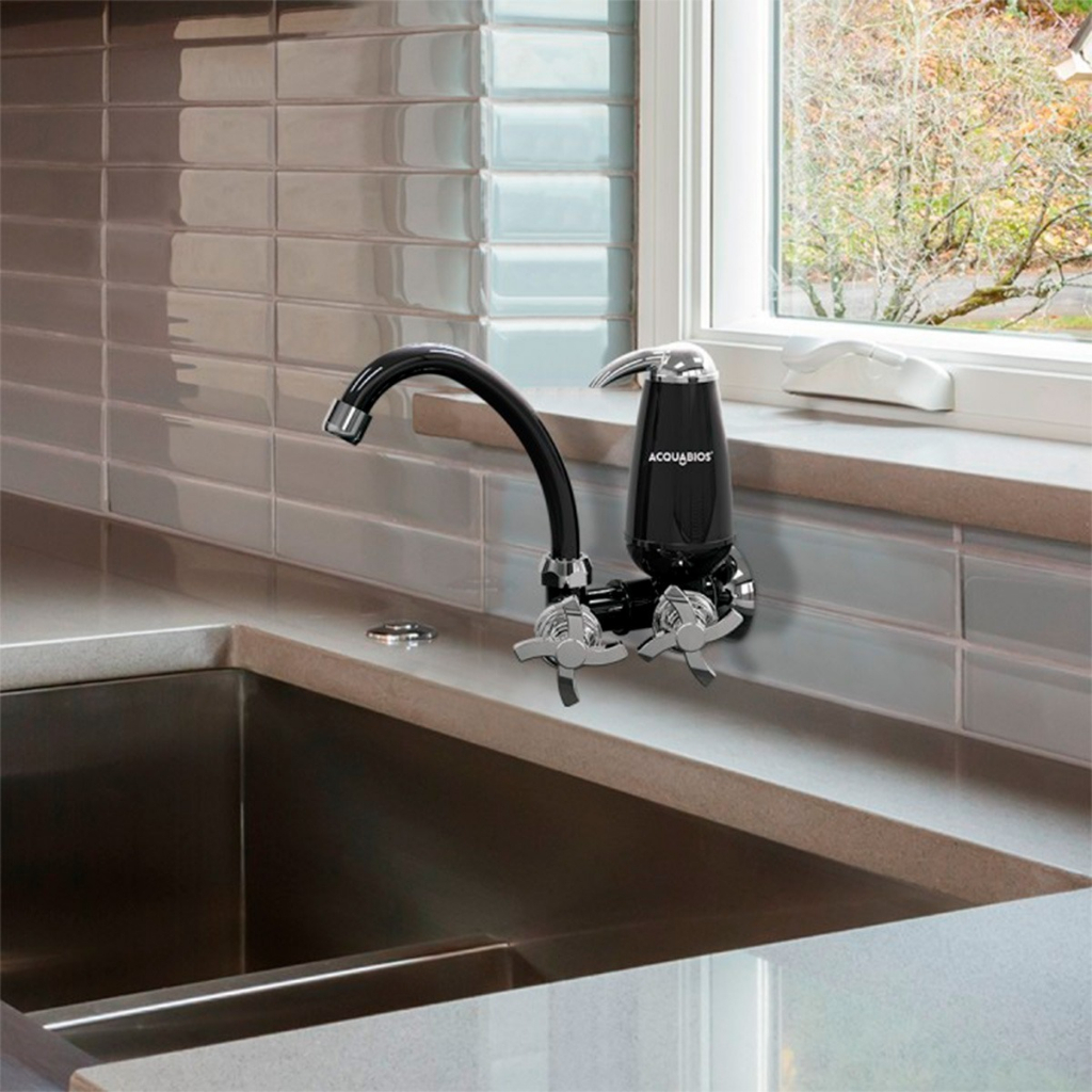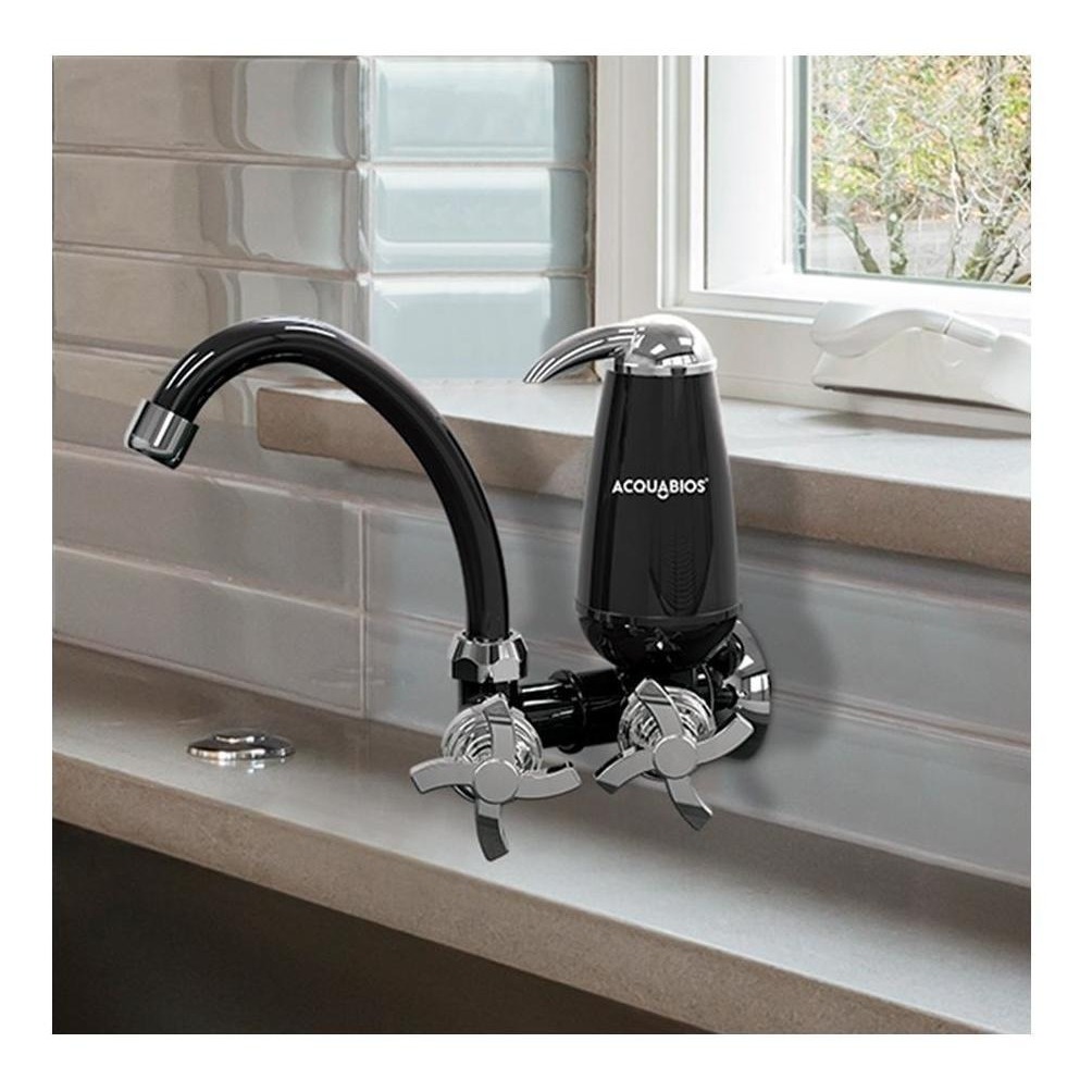 Torneira C/ Filtro Bica Movel De Parede Quadriseta Acquabios Acabamento Cromado Cor Preto