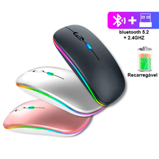 Mouse Bluetooth e Wireless Recarregável Sem Fio Gamer com LED RGB 2.4 GHz e Bluetooth Compatível