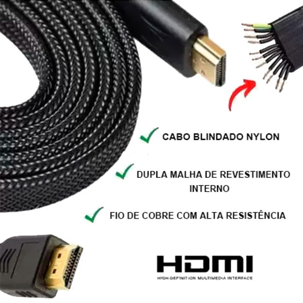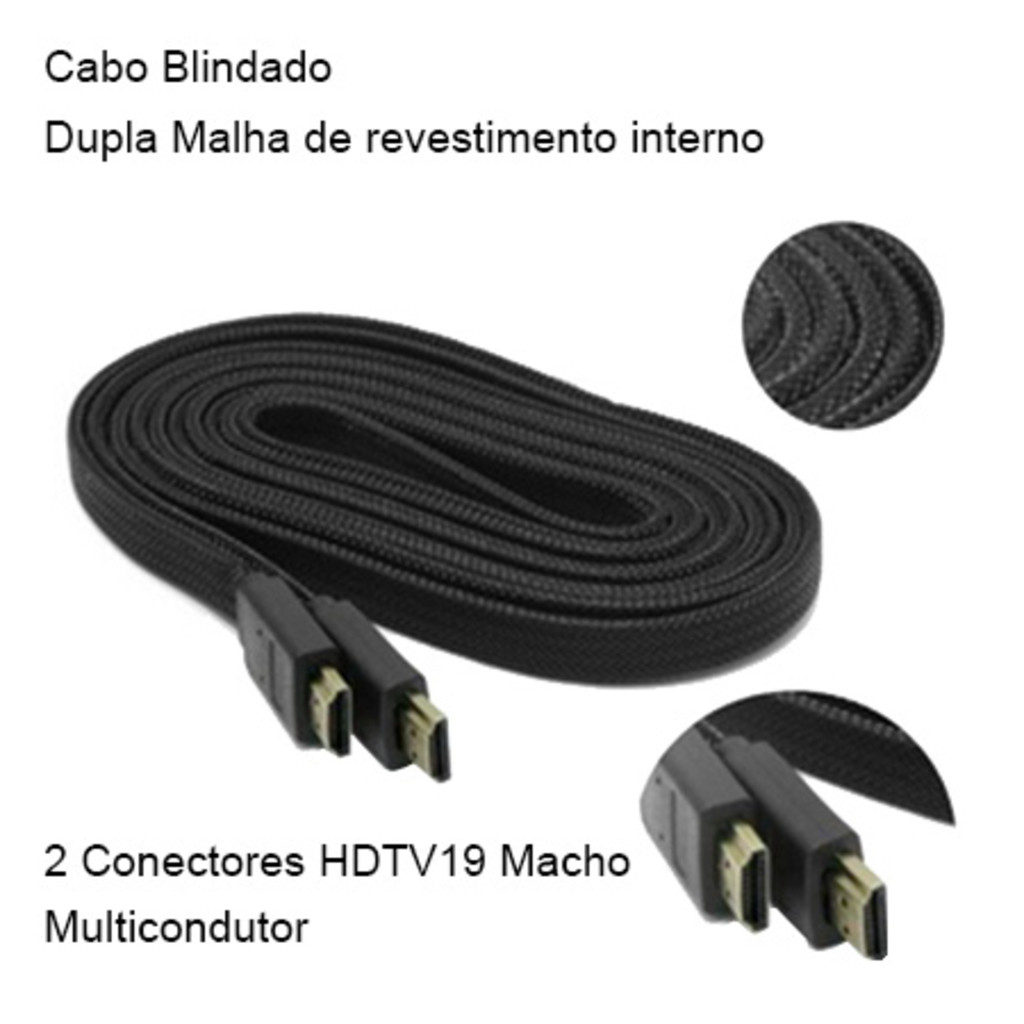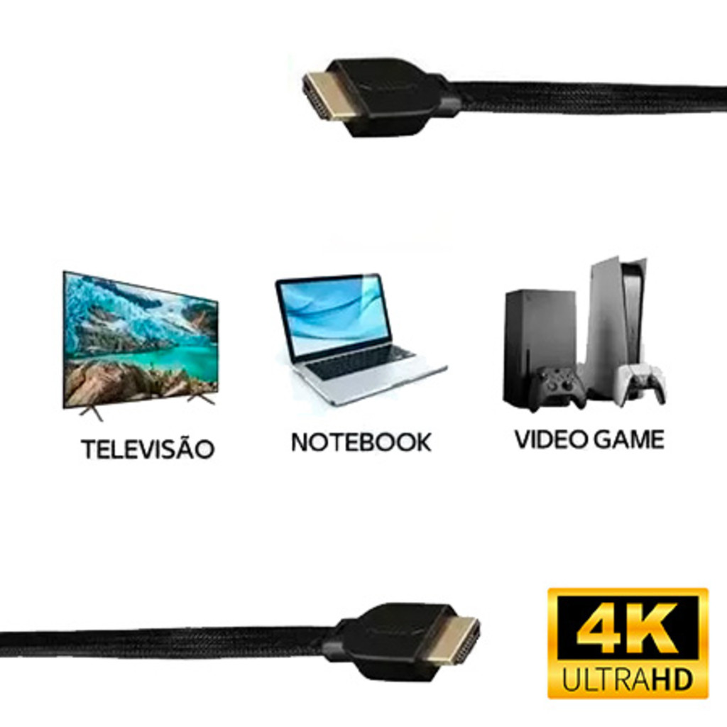 Cabo Hdmi 5 Metros 4k Ultra Hd 3D Blindado Com Revestimento Interno E Nylon Externo para Proteção