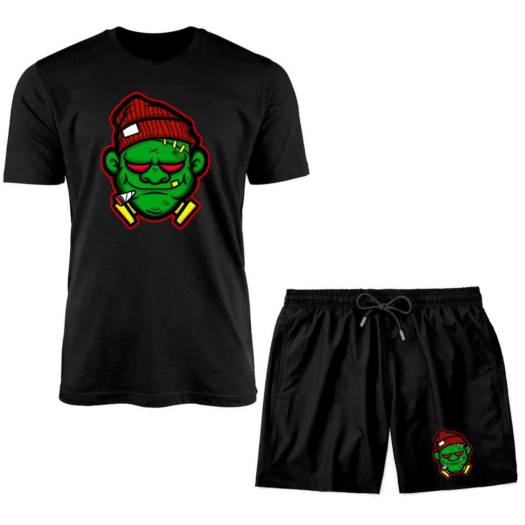 Kit De Camiseta E Bermuda Monstro Verde Estilo Street Wear Conjunto Masculino