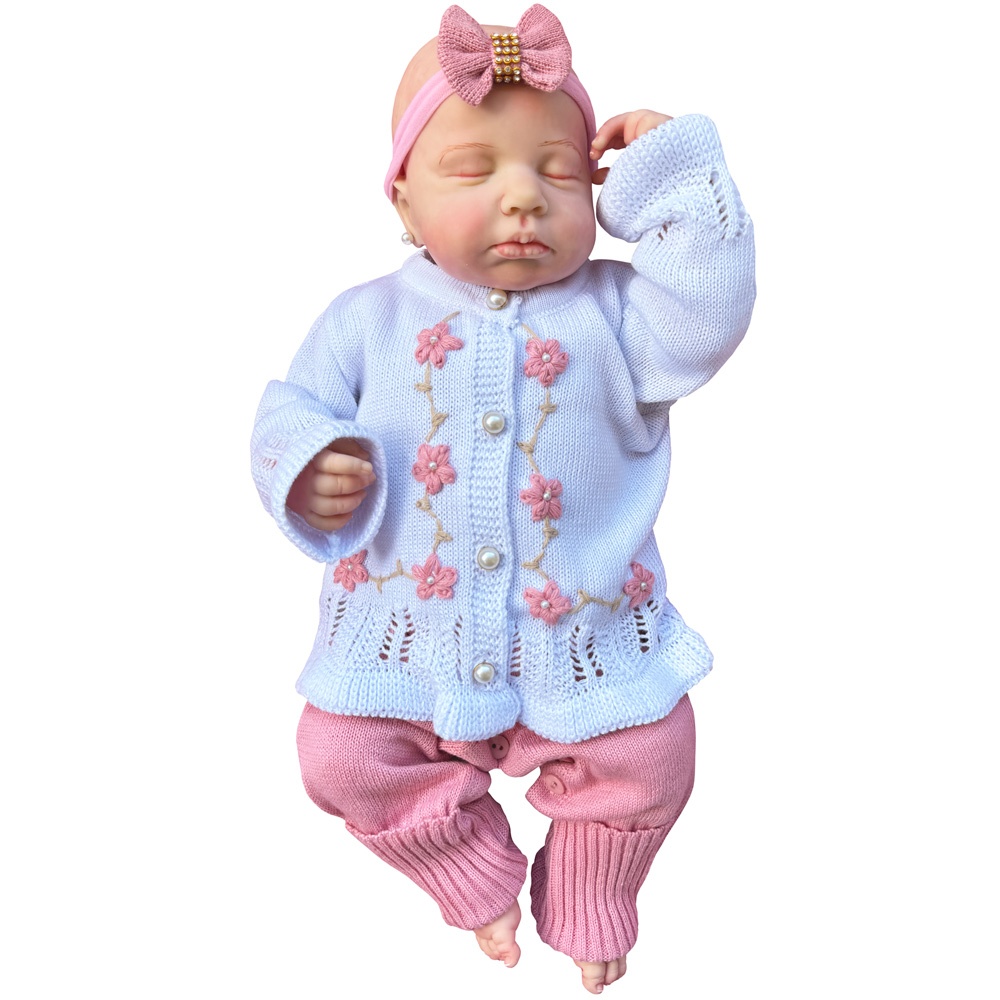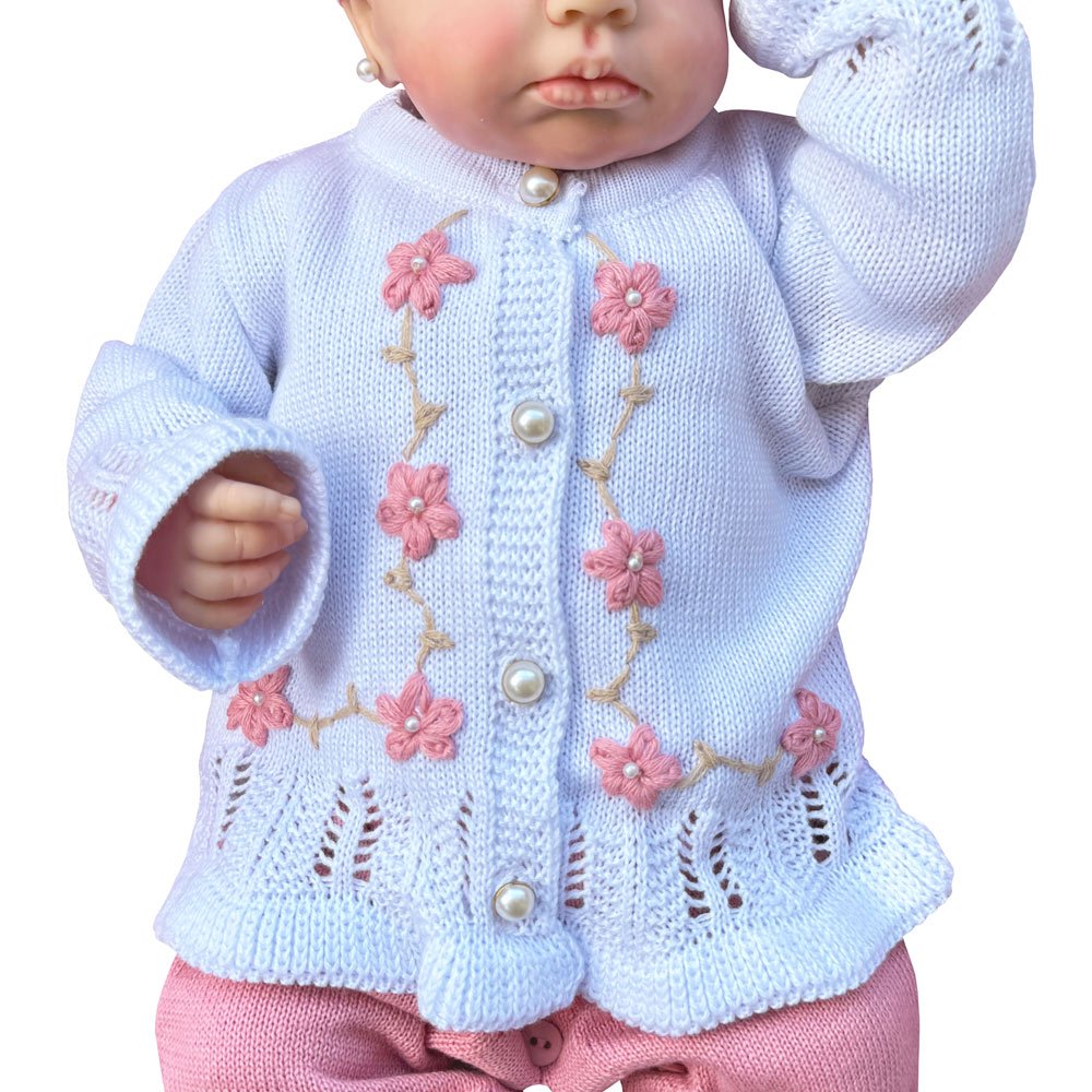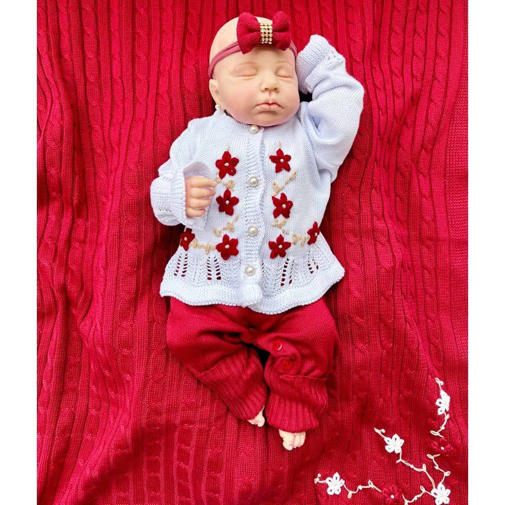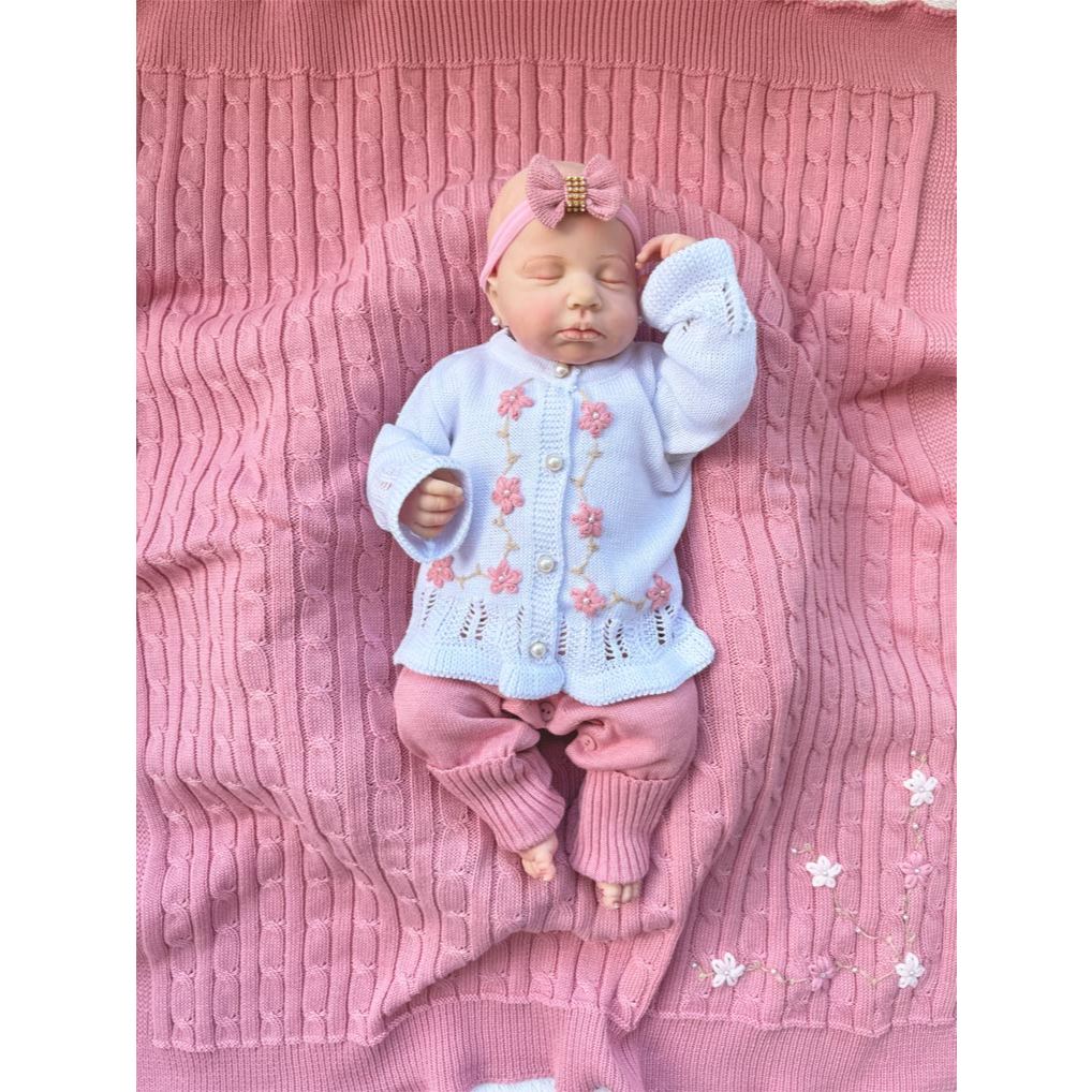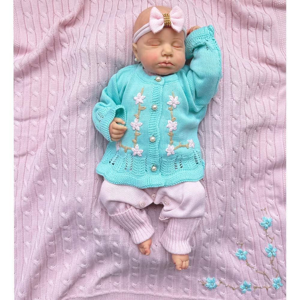 Conjunto Saida Maternidade RN Menina Completa kit 4 peças com detalhes bordado a mão