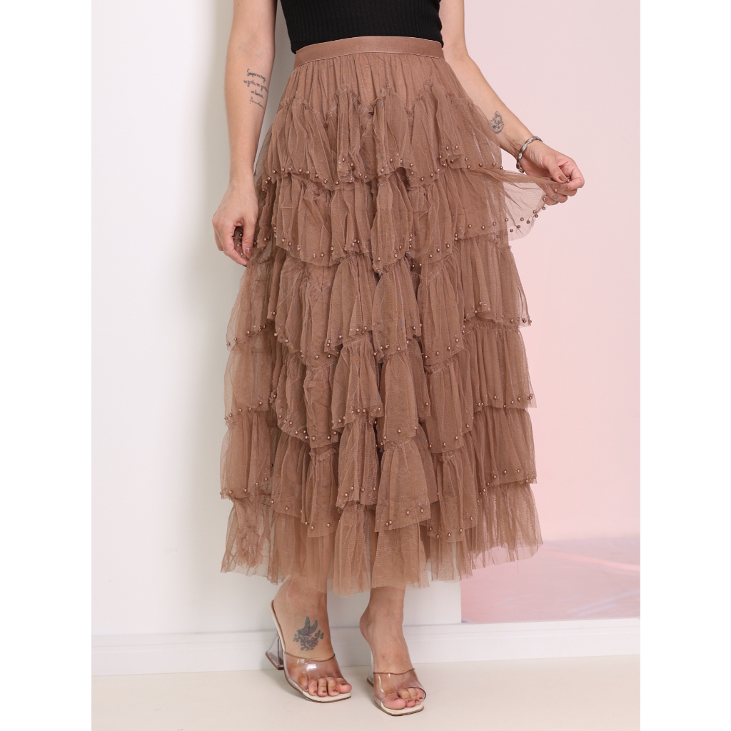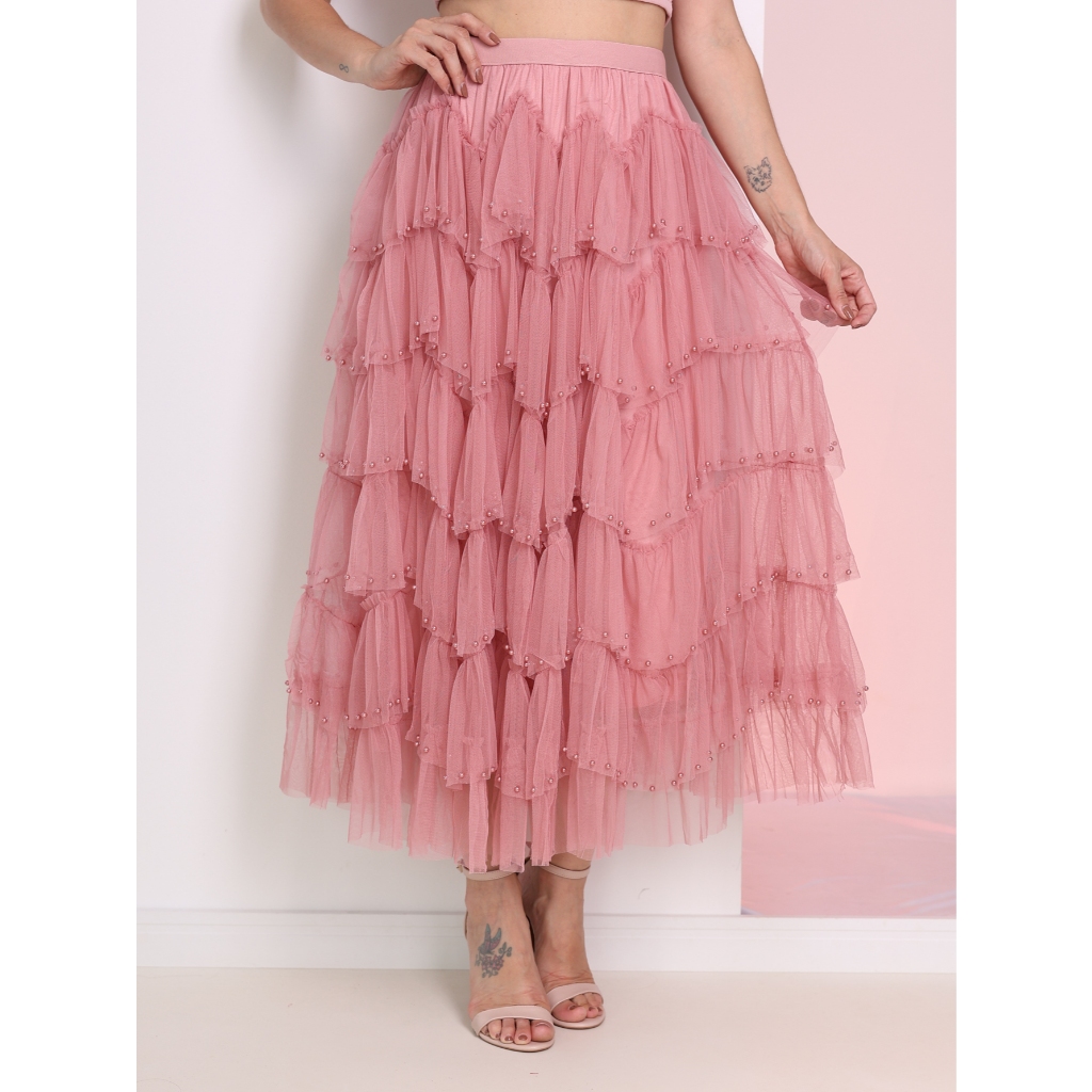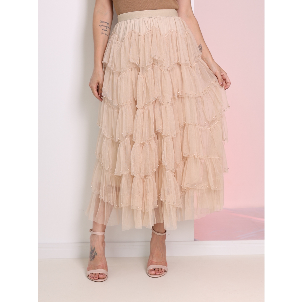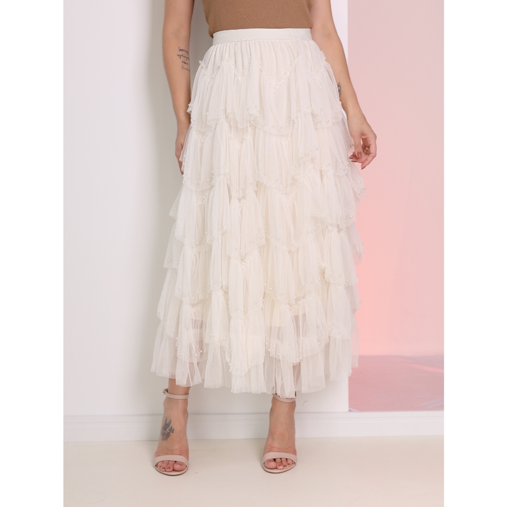 Saia de Tule com 800 Perolas com Caimento Elegante e Estiloso de Alta Qualidade WK-89