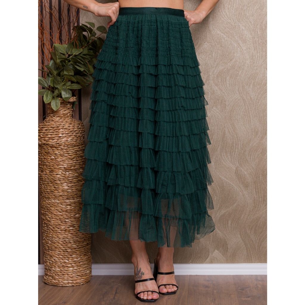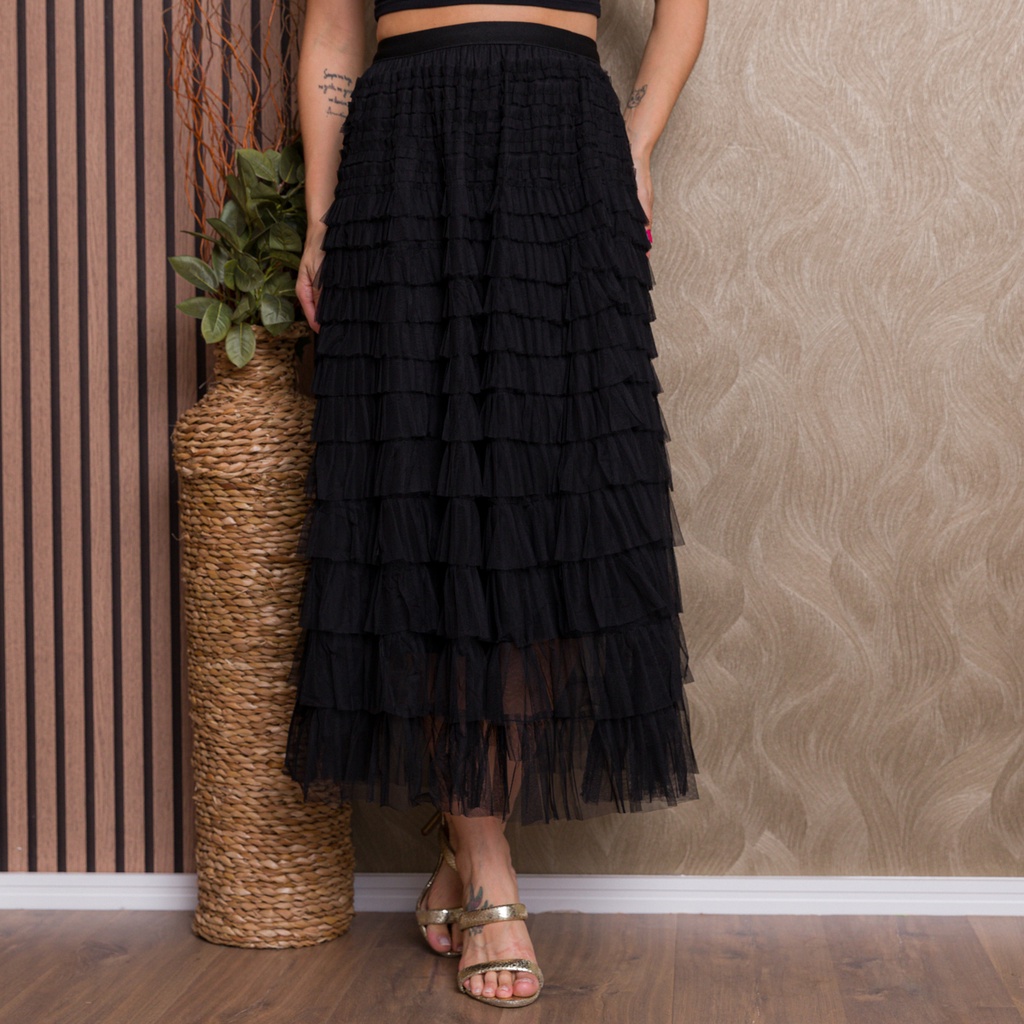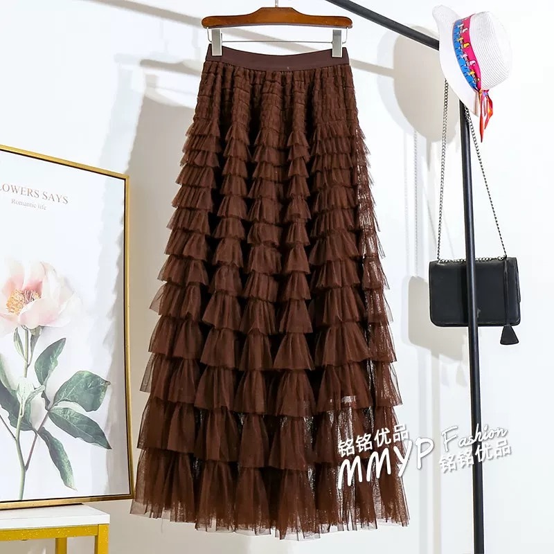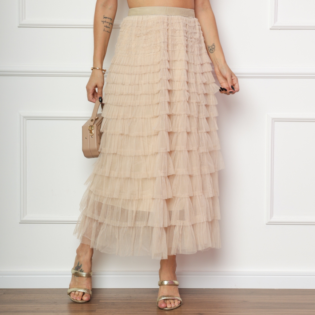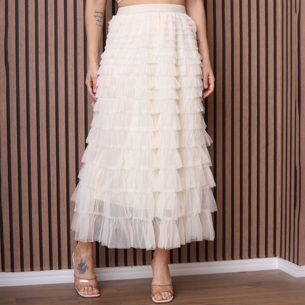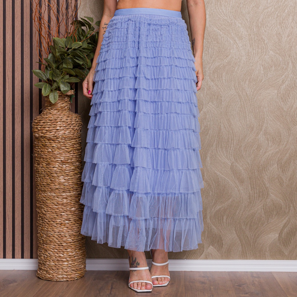 Saia de Tule Moda Feminina Comprida Elegante e Elastica Saia de Babado de Camadas /saias evangélicas