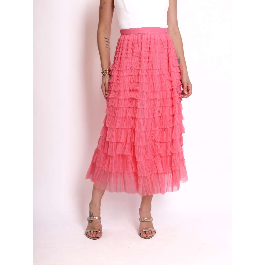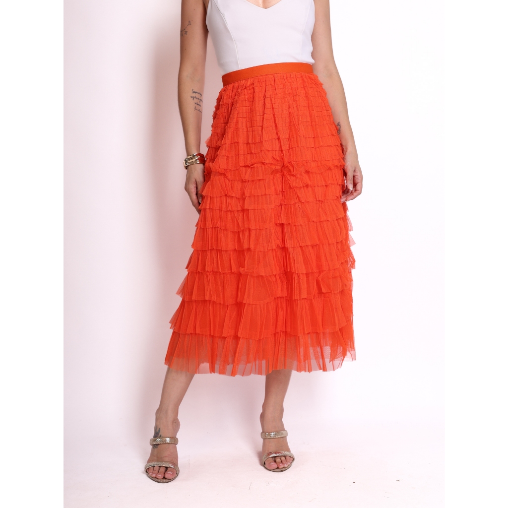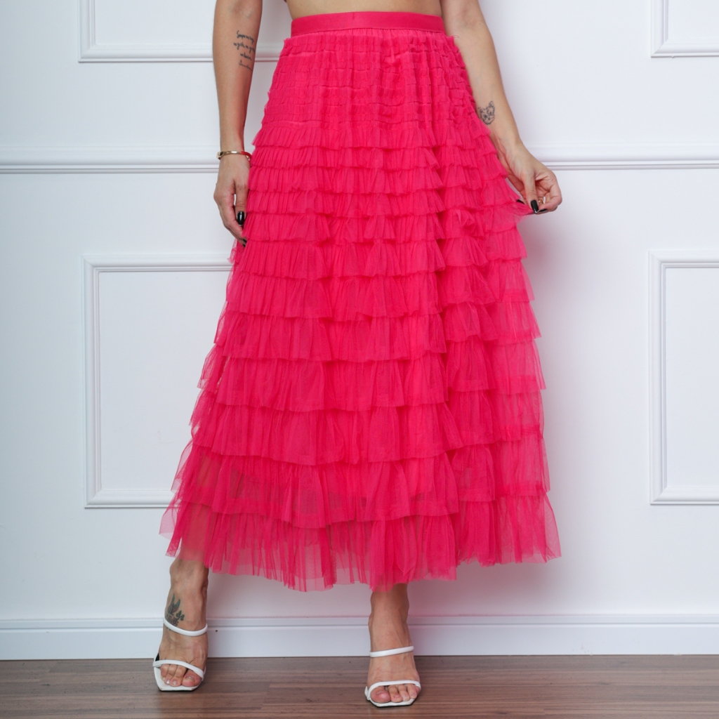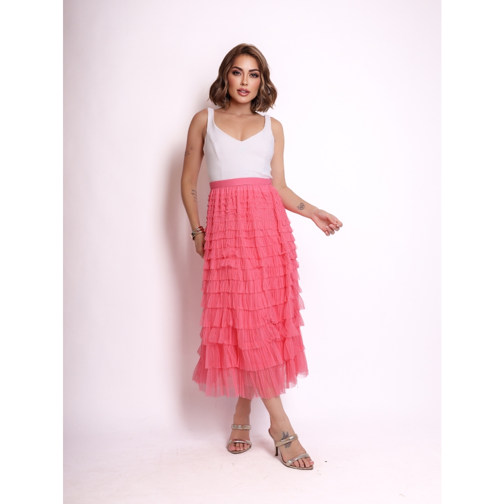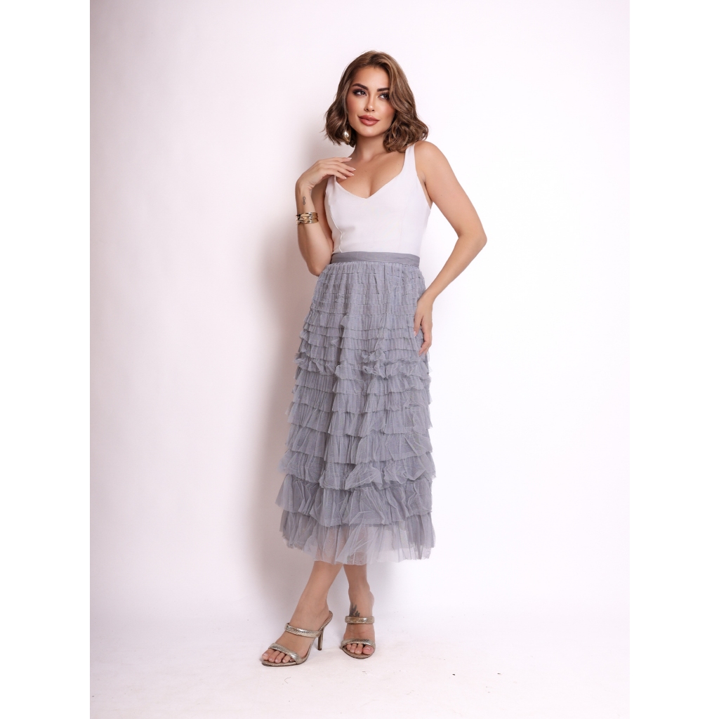 Saia de Tule Moda Feminina Comprida Elegante e Elastica Saia de Babado de Camadas /saias evangélicas