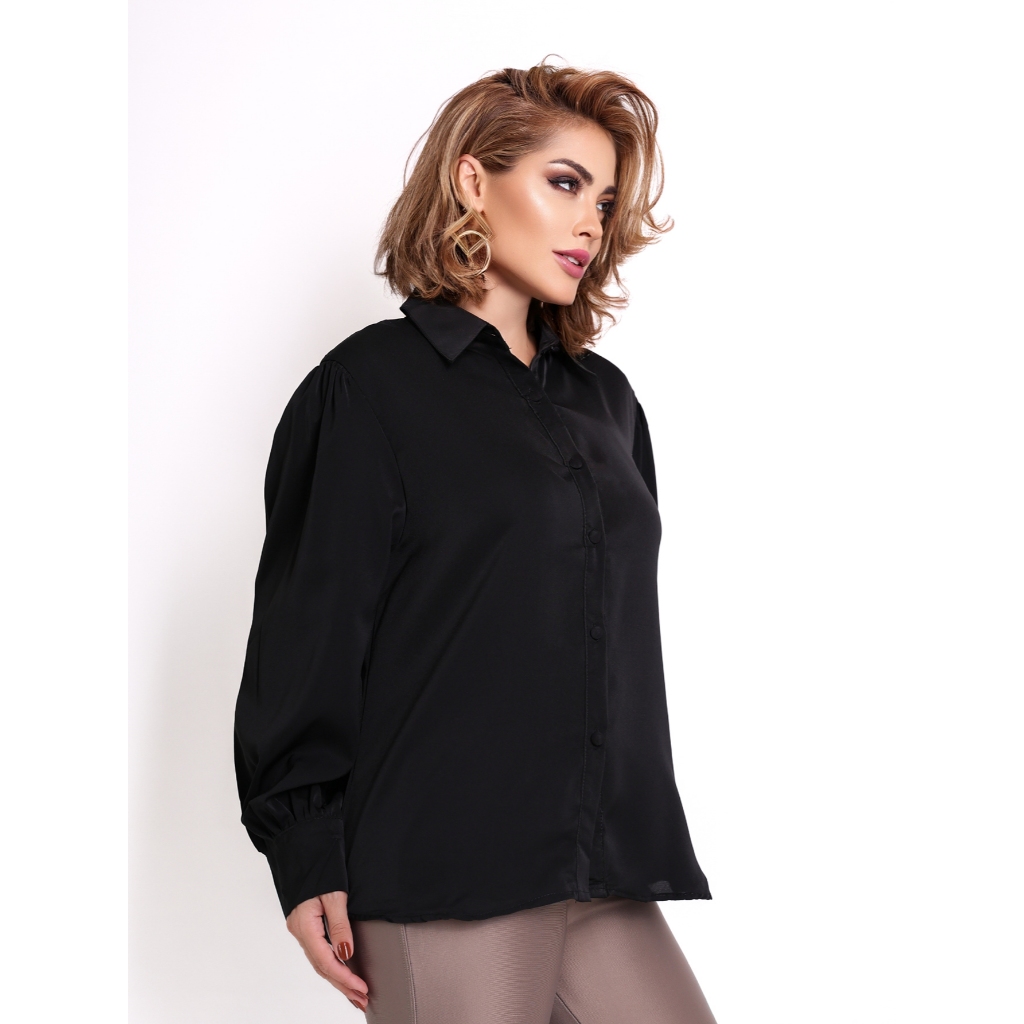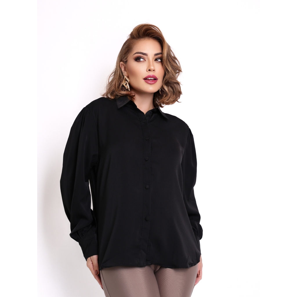 Camisa Social Feminina Branca e Preta Lisa de Melhor Qualidade