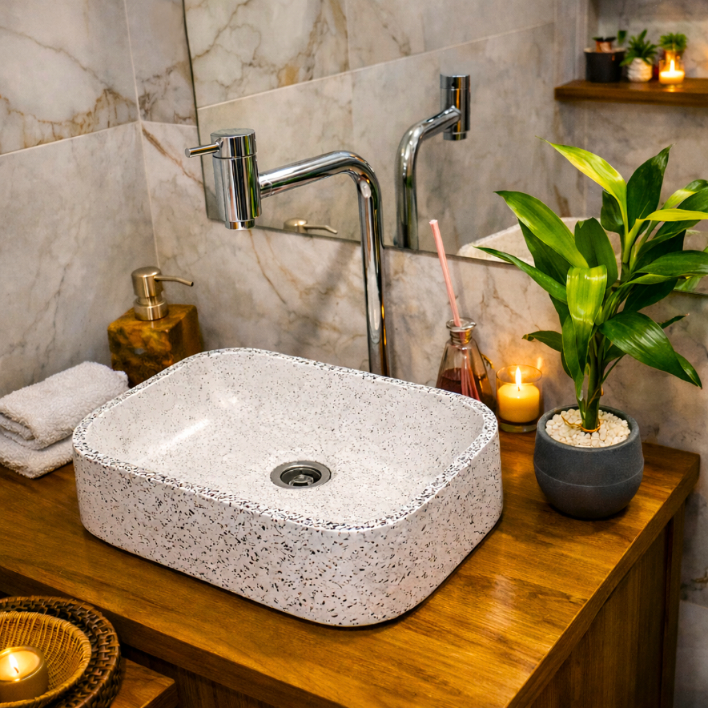 Cuba De Apoio Para Banheiro Em Granilite Rústico Artesanal Premium