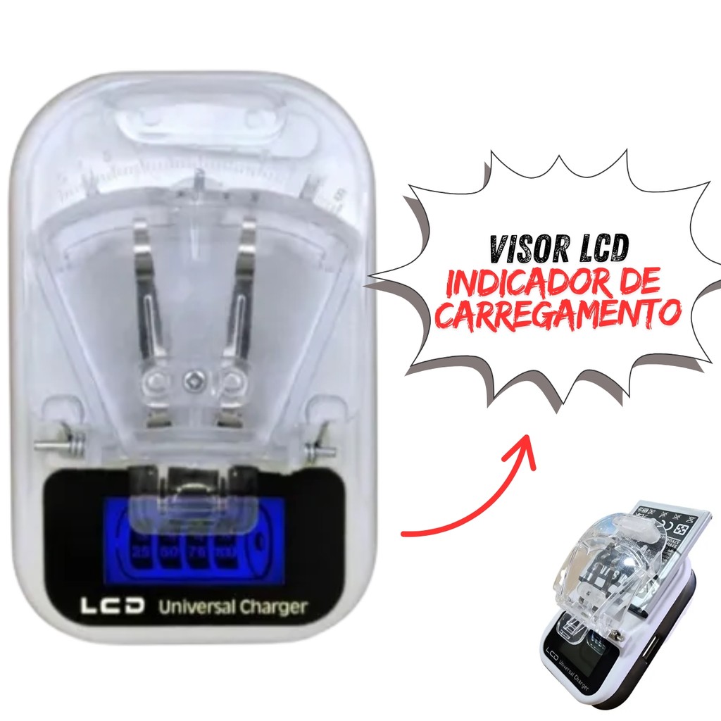 Carregador Universal Portátil Para Baterias Celular Câmeras Lcd Usb
