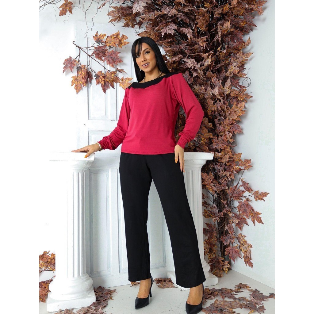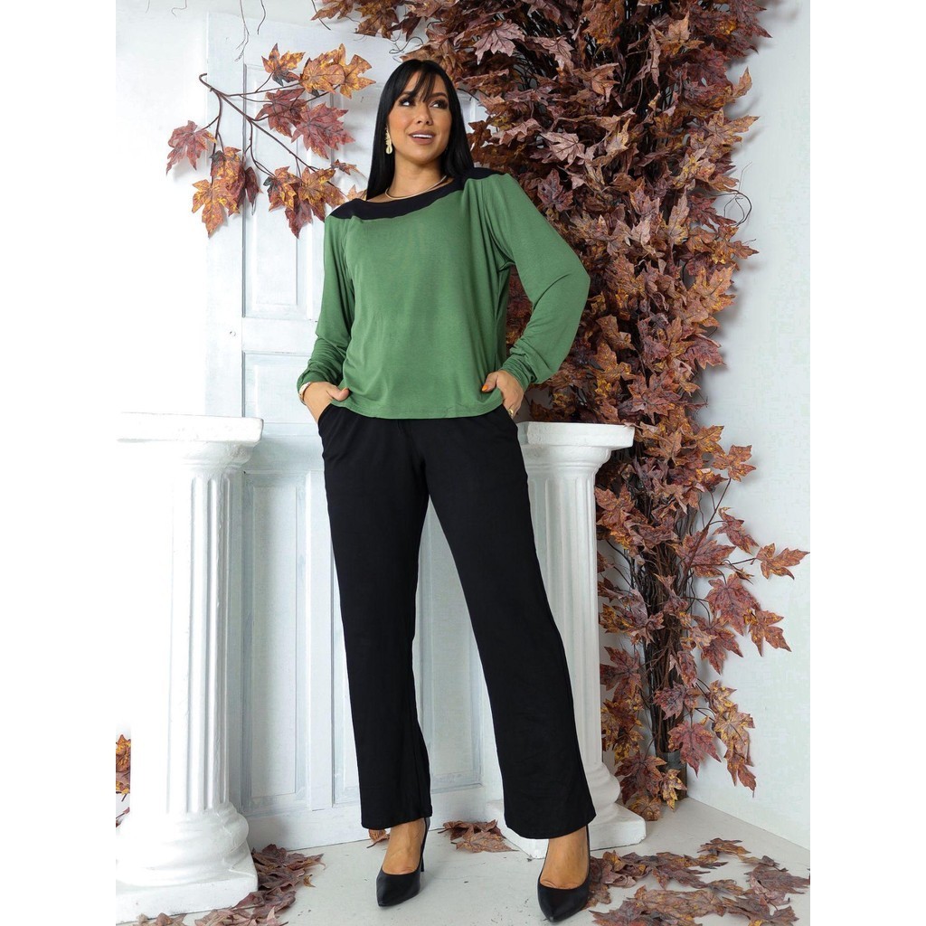Conjunto Feminino Blusa Manga Longa e Calça Moletim Casual Premium