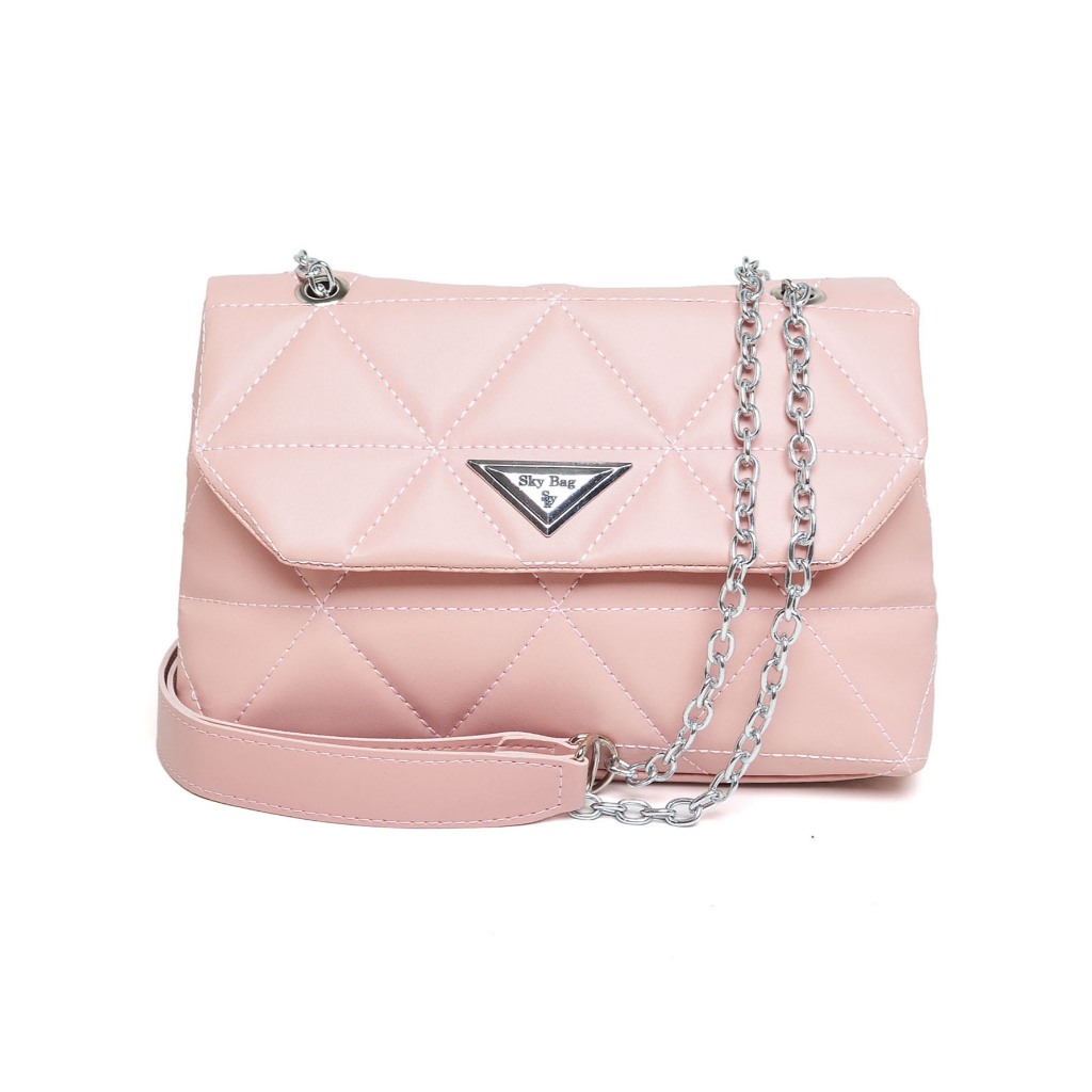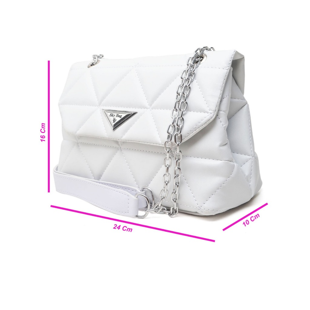 Bolsa Feminina Diamante Bordada De Ombro Alça em Corrente Zíper Interno