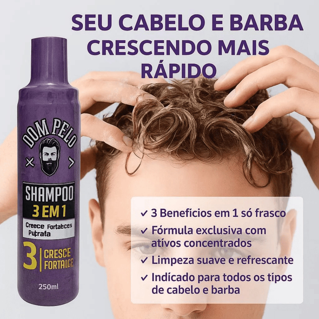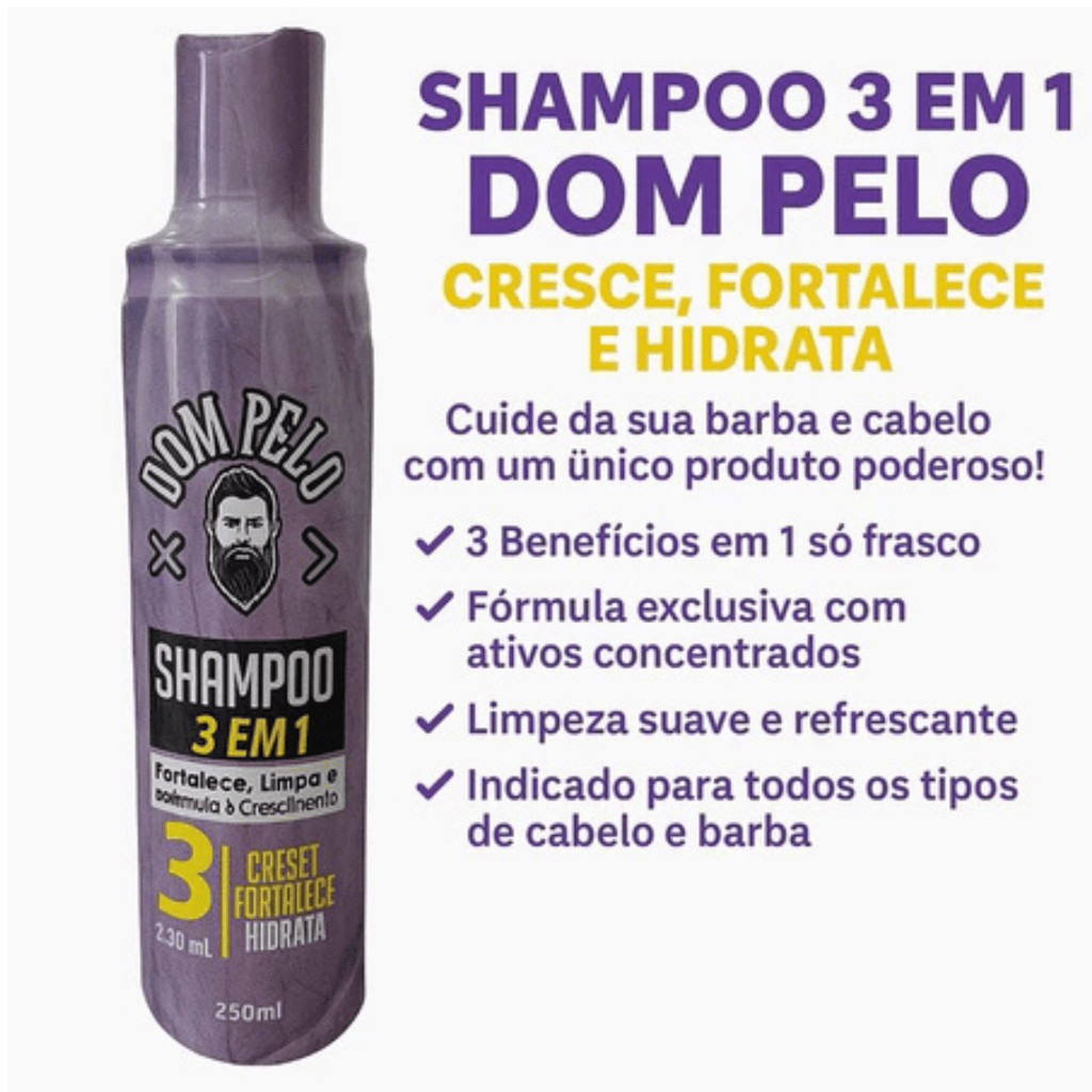 kit 3 Shampoo 3 em 1 Dom Pelo Original - Fortalece, Limpa e Estimula o Crescimento