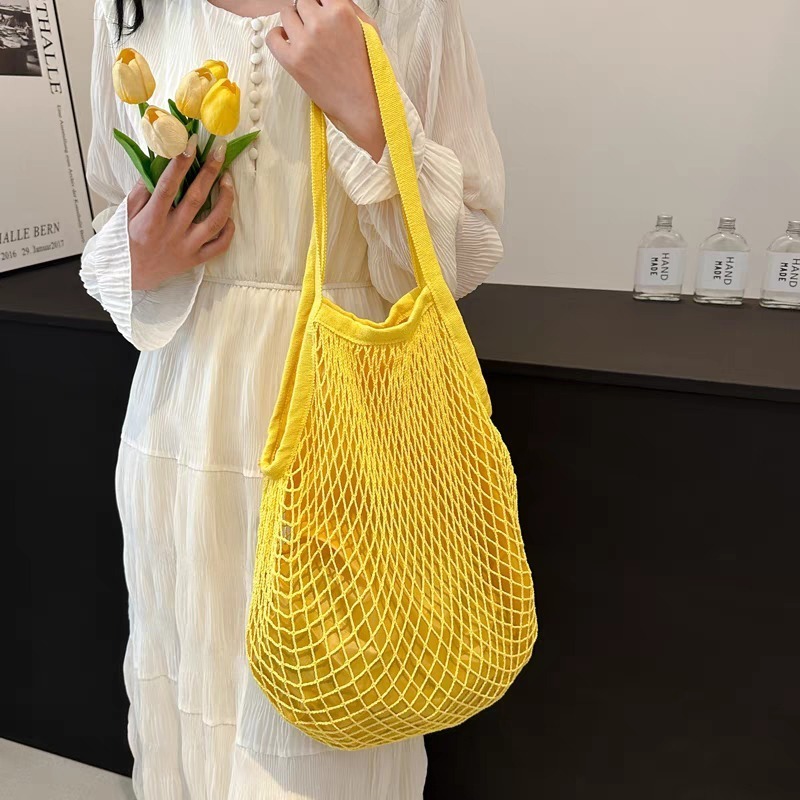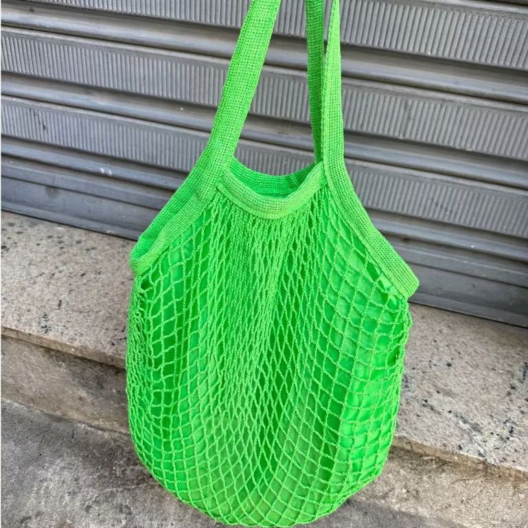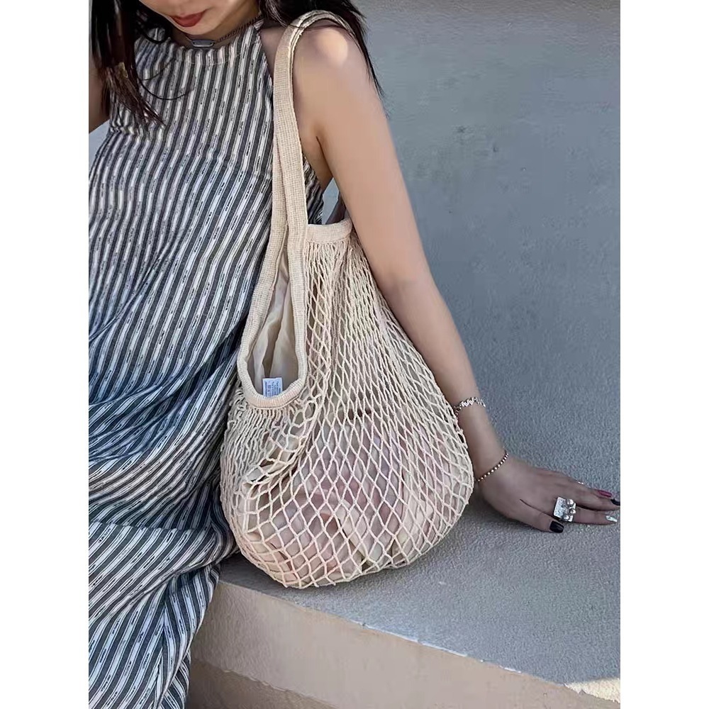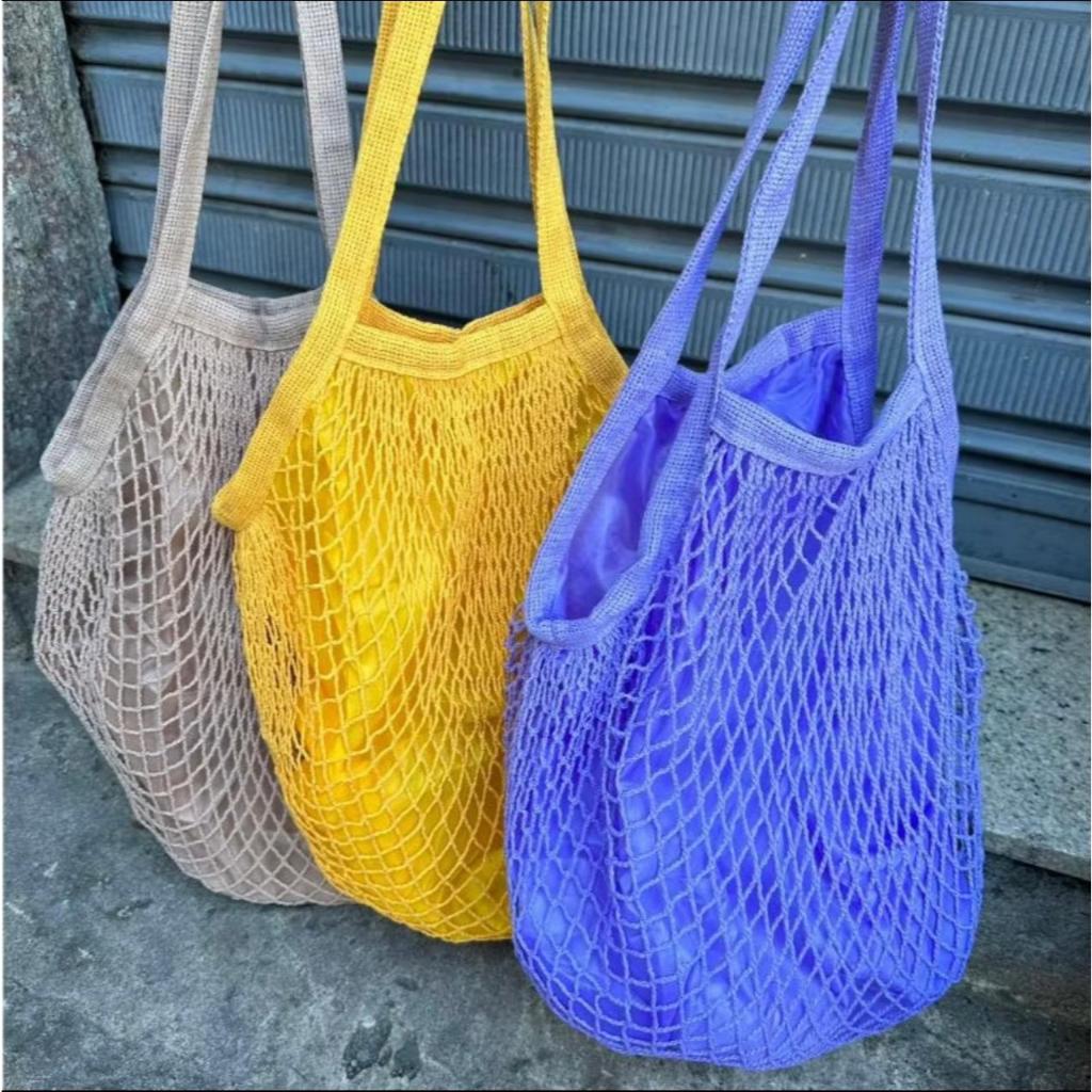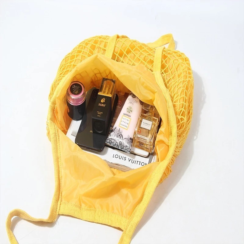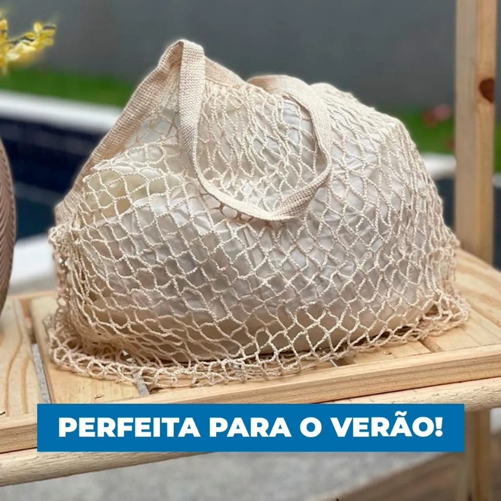Bolsa Rede Feminina Sacola De Praia Compra Passeio Rede Vazada Crochê Com Forro