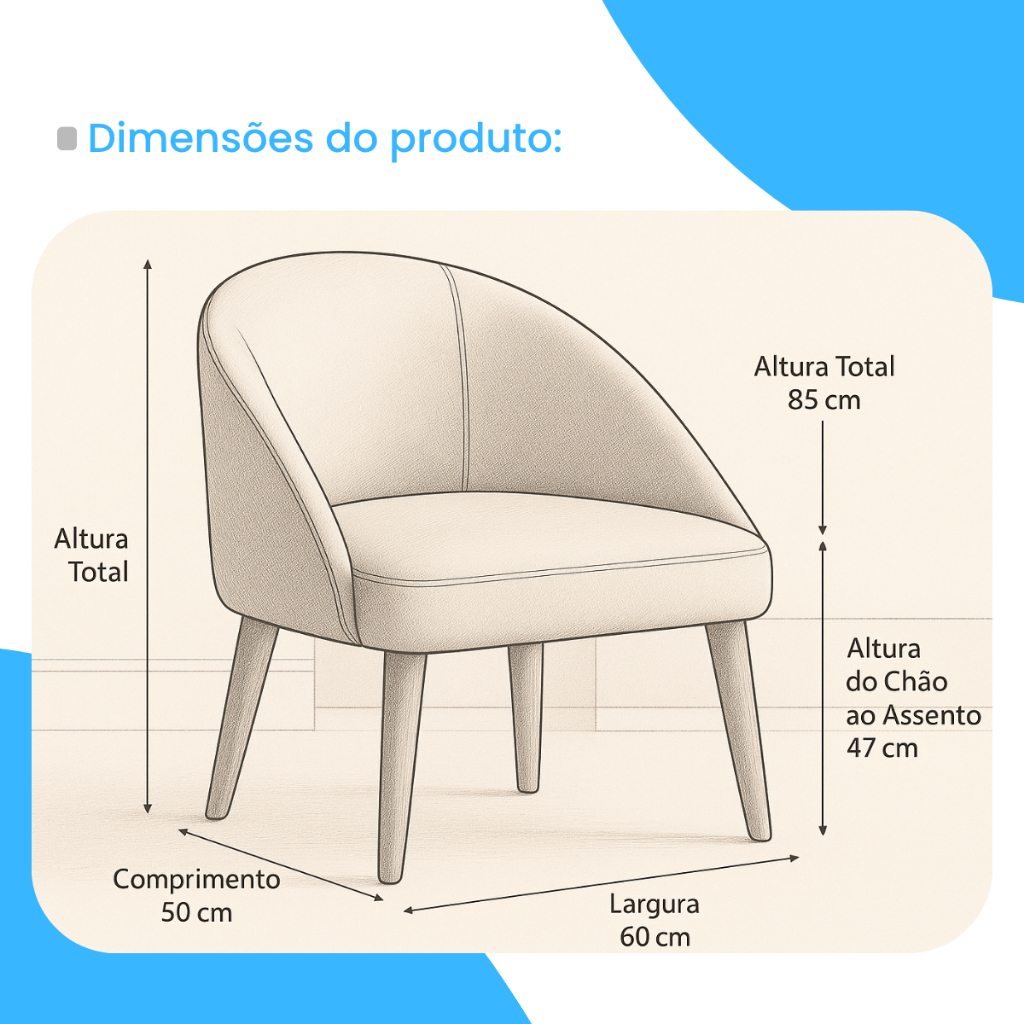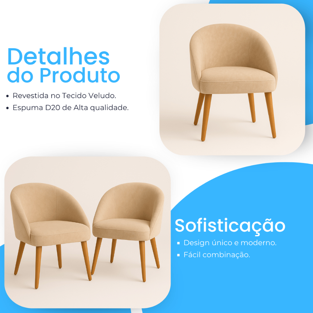 Poltrona Lua Veludo Estofada Decorativa Luxo para Sala de Jantar, Recepção, Penteadeira, Sala de Estar e Escritório