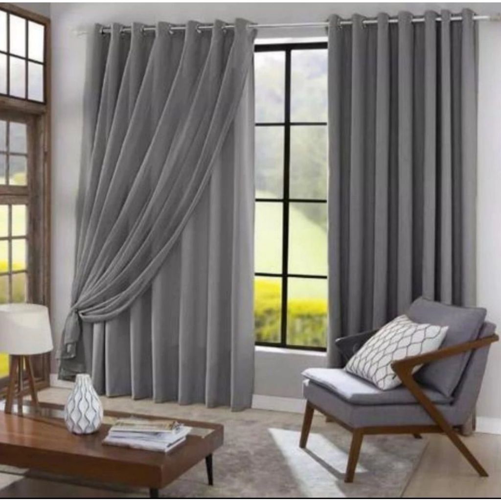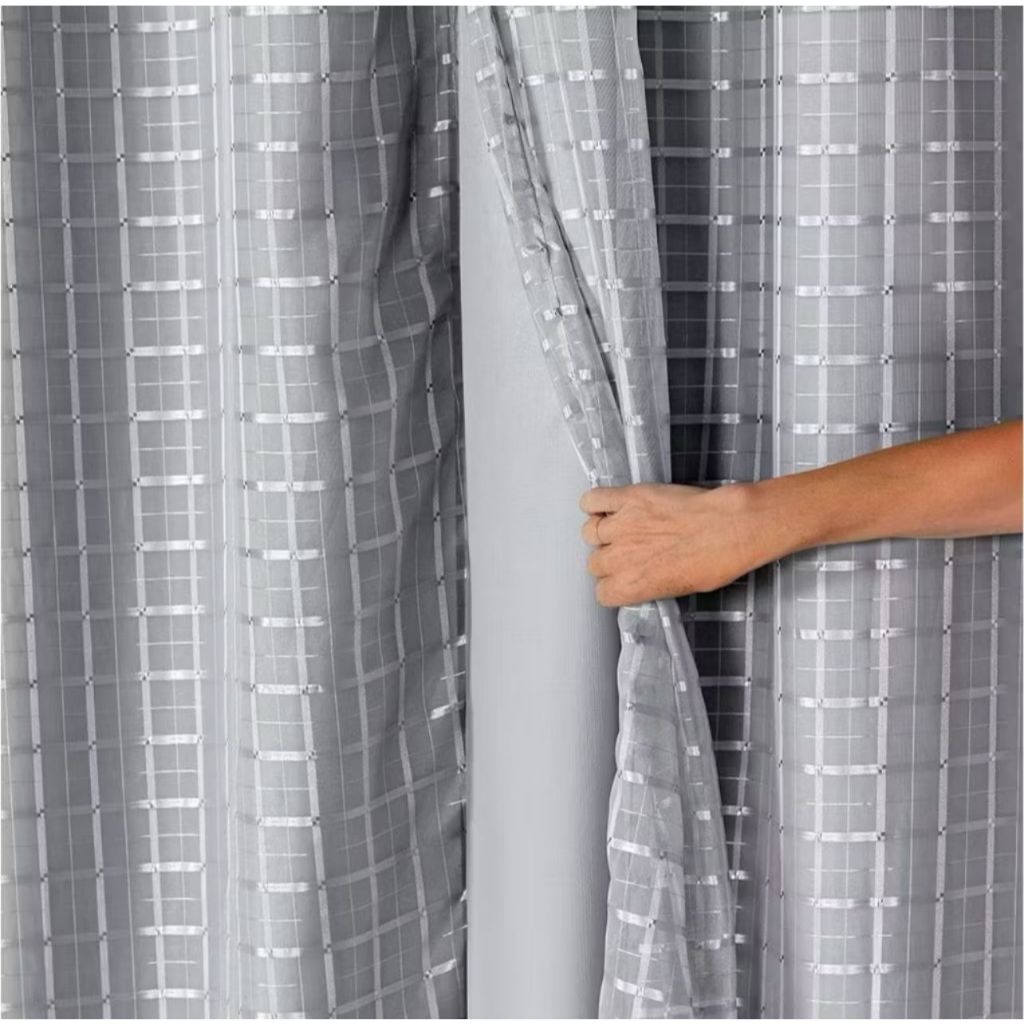 Cortina 5,00x2,80 Forro Microfibra C /voil Xadrez Ou Liso P/ Varão