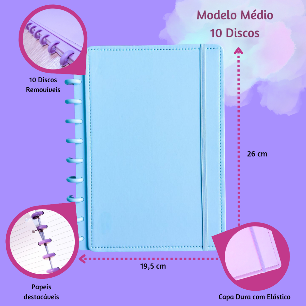 Caderno De Disco Inteligente Médio/Grande 10 e 11 Discos Capa Dura - Papelaria Escritório Escola