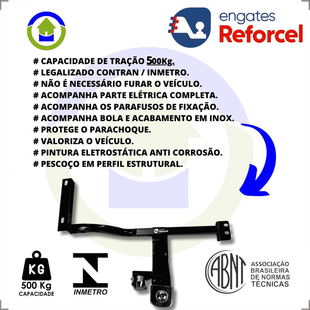 Engate Reboque Rabicho Vw Fox Crossfox 2003 A 2023 500kg bOM