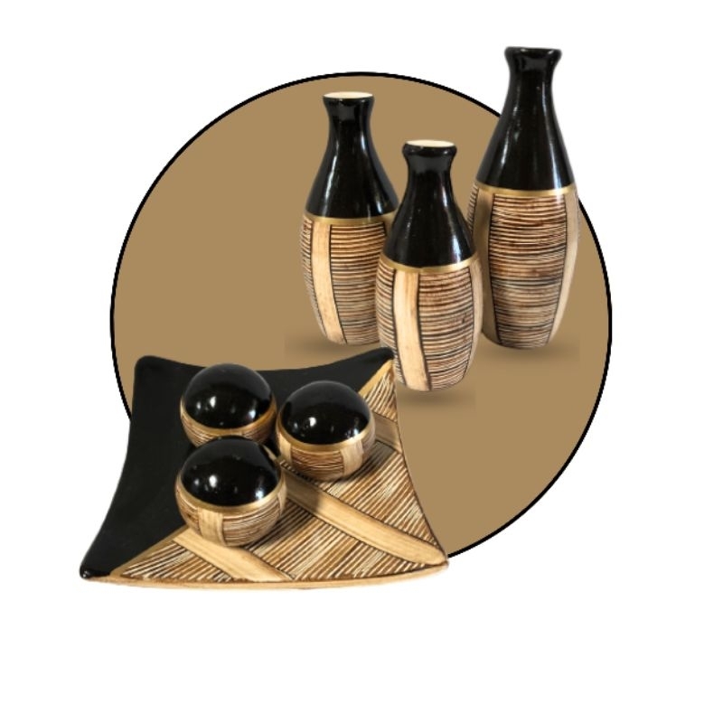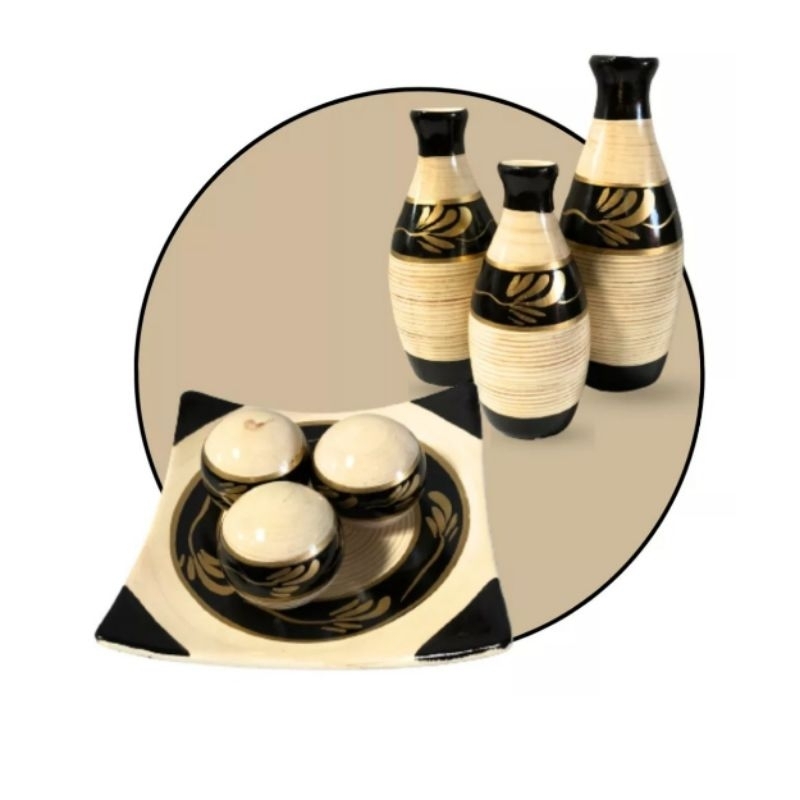 Conjunto Enfeite Ceramica Decoração Sala Rack Centro de Mesa Estante Decorativo Cores