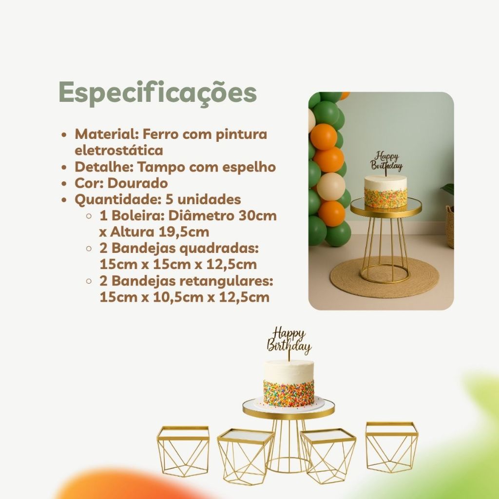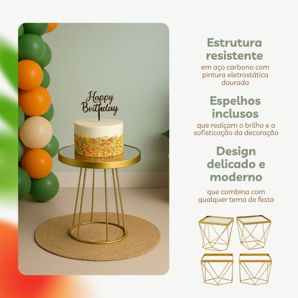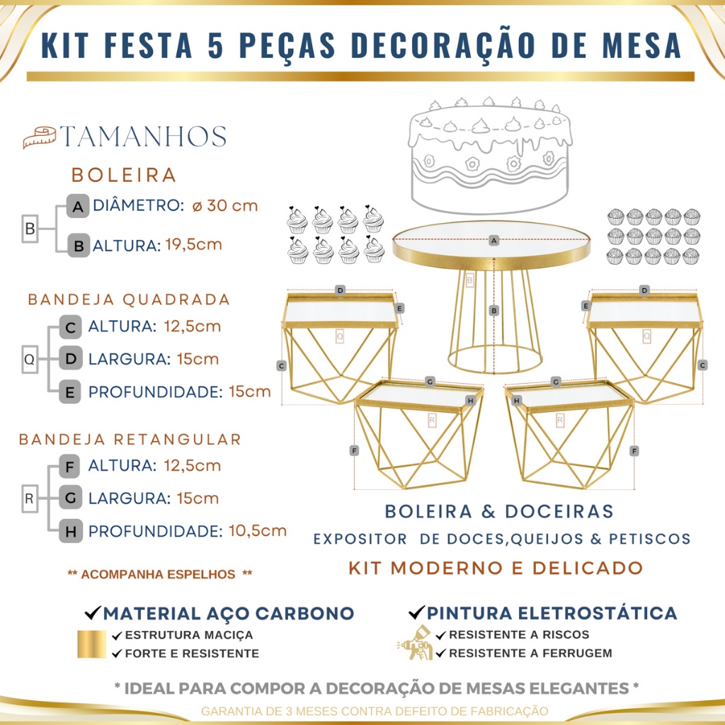 Conjunto Boleira e Bandeja Espelhada 5 un para Decoração de Festa