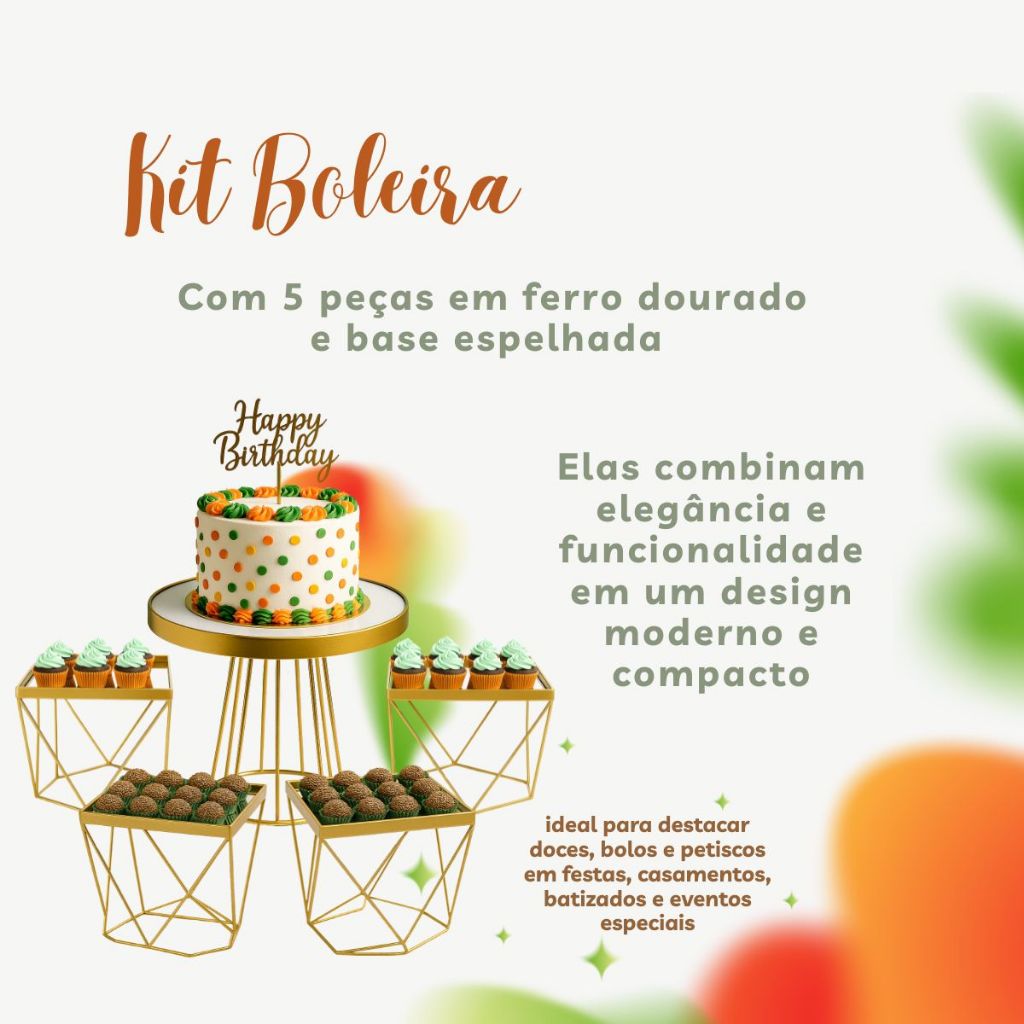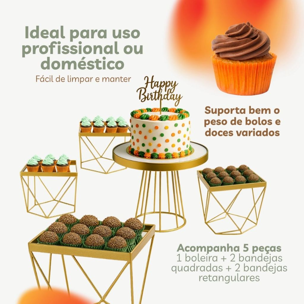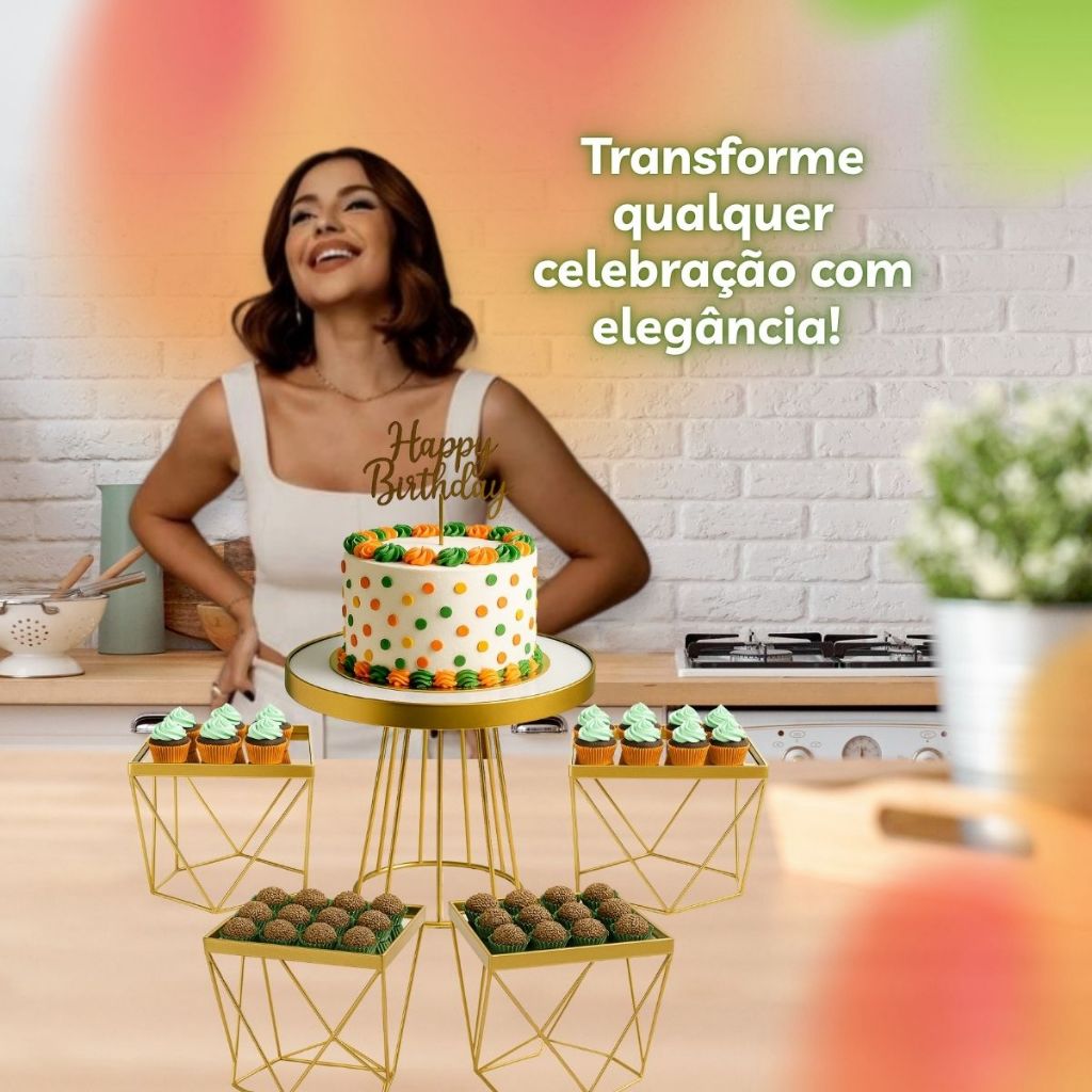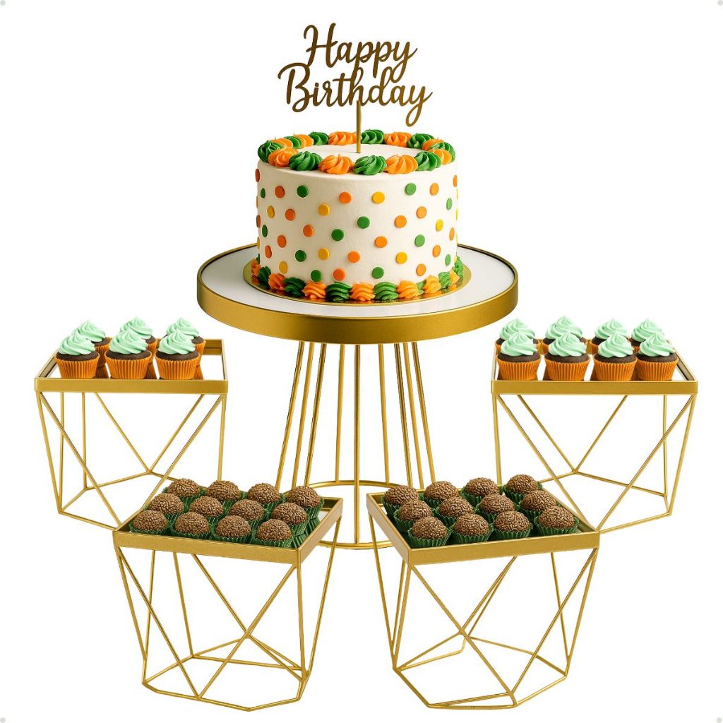 Conjunto Boleira e Bandeja Espelhada 5 un para Decoração de Festa