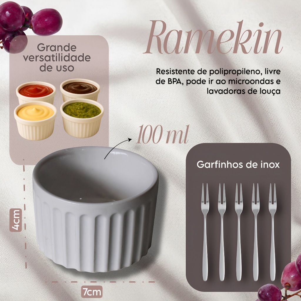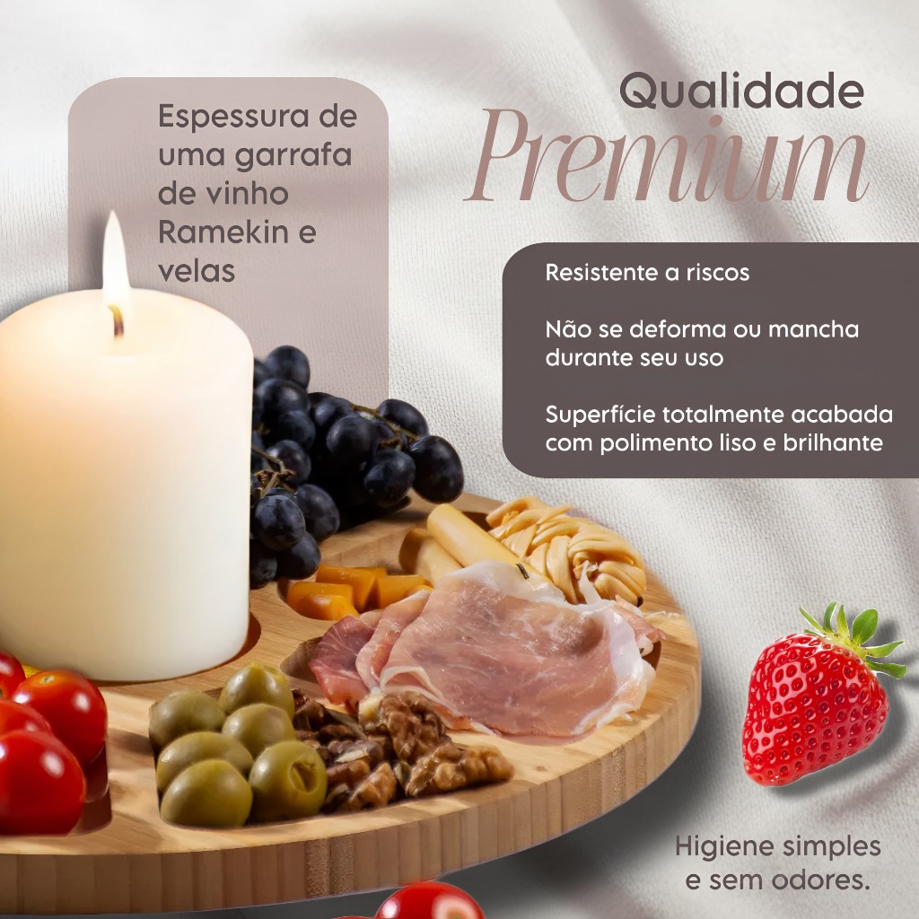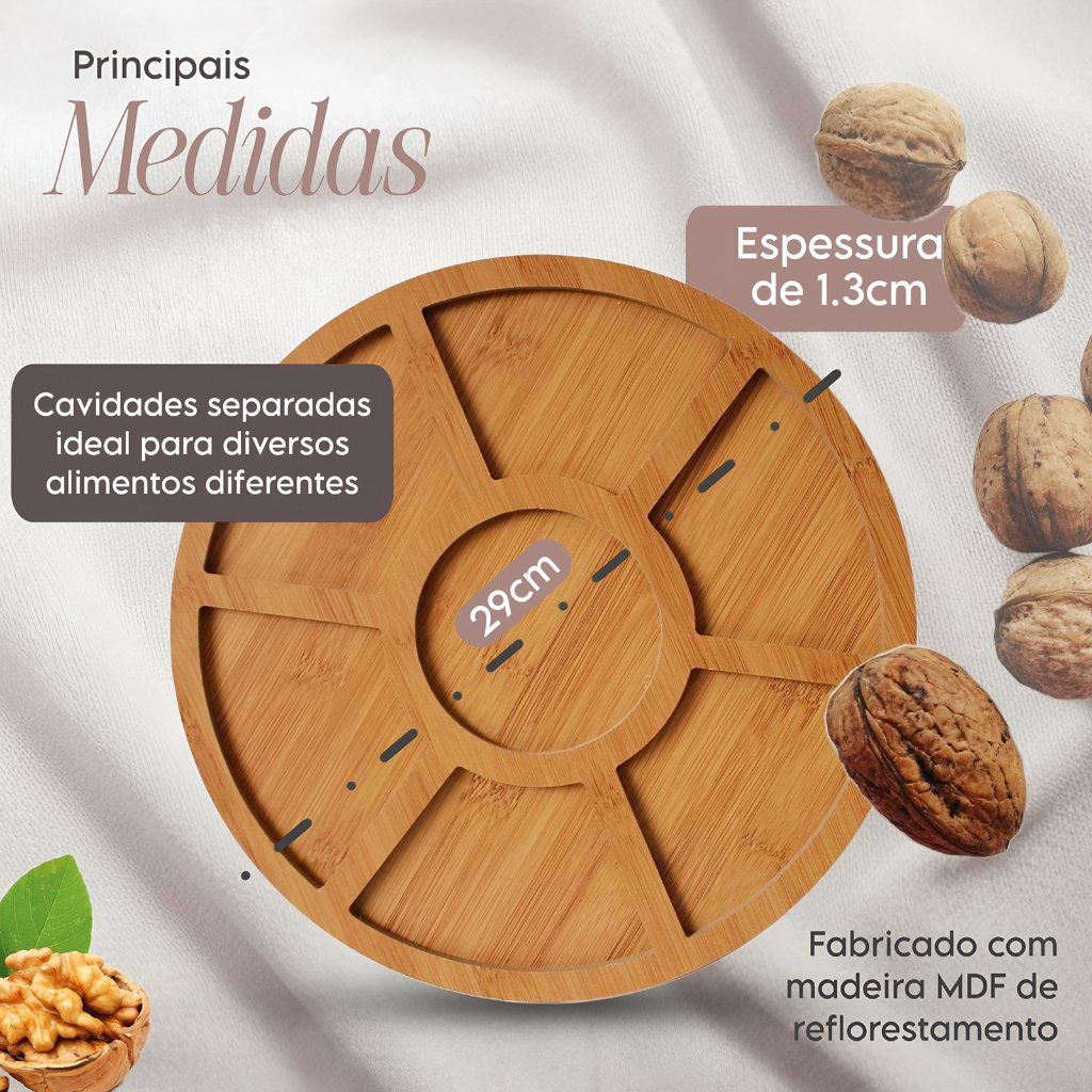 Kit Petisqueira Redonda 6 Garfinhos Ramekim Molheira Gamela Madeira Aperitivo Frios Queijo