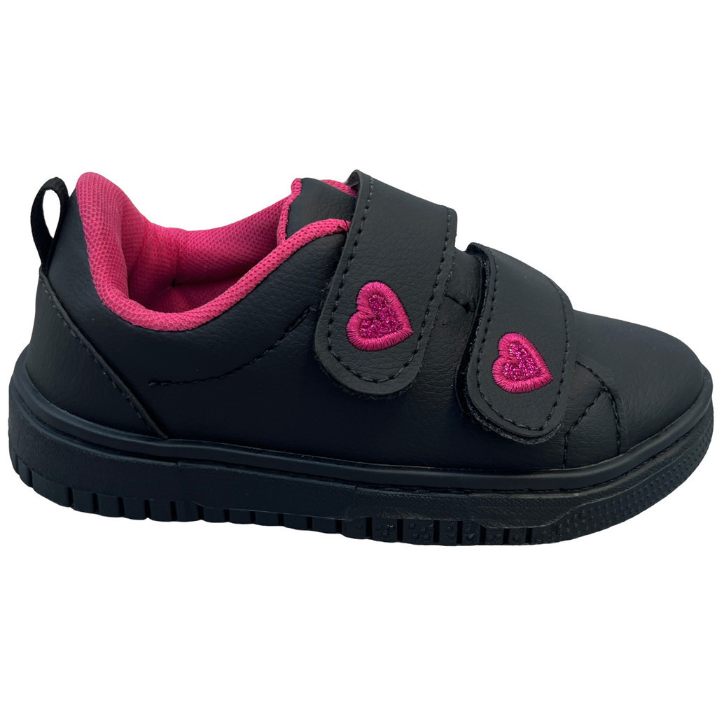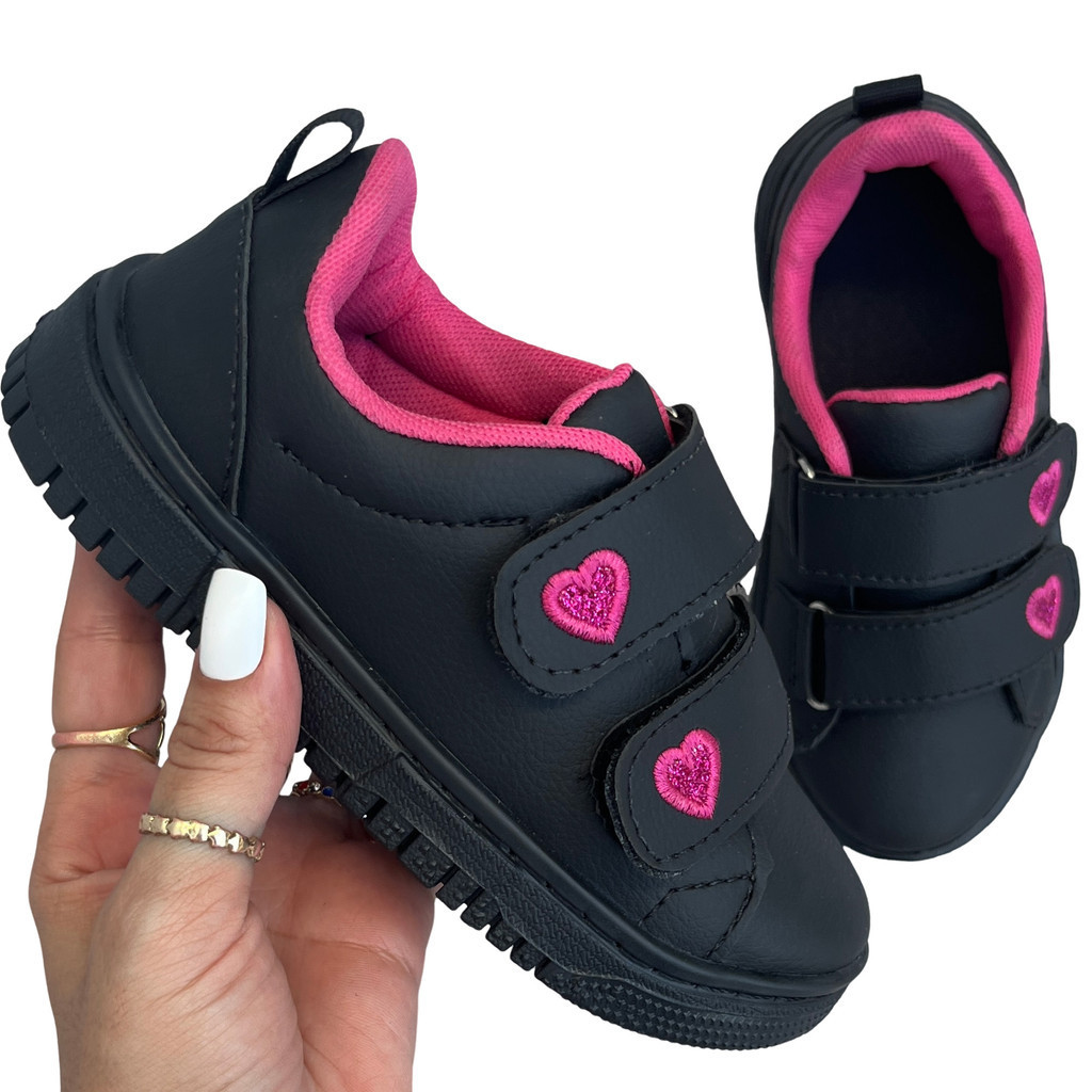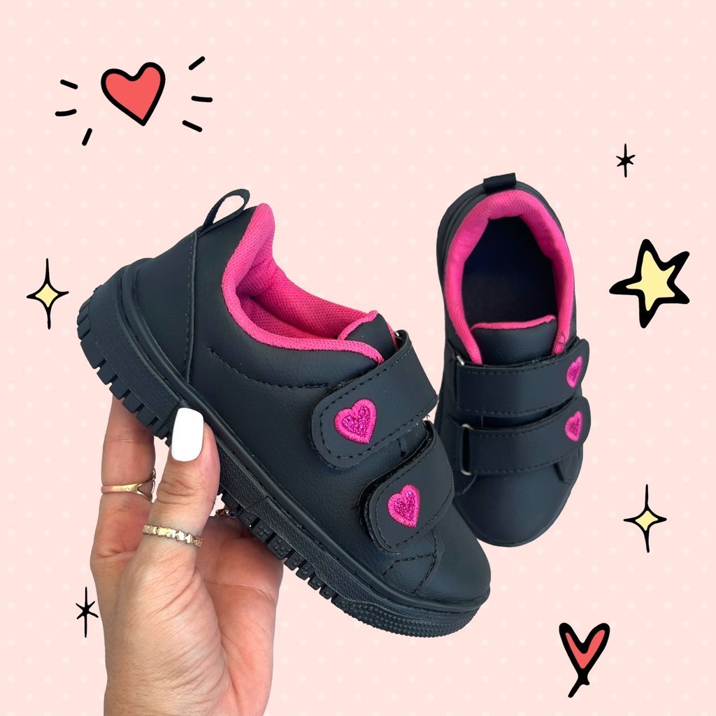 Tênis Infantil Feminino Escolar Costurado Love Calce Rápido e Prático