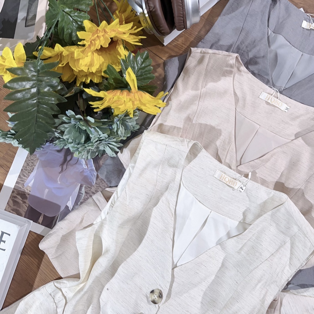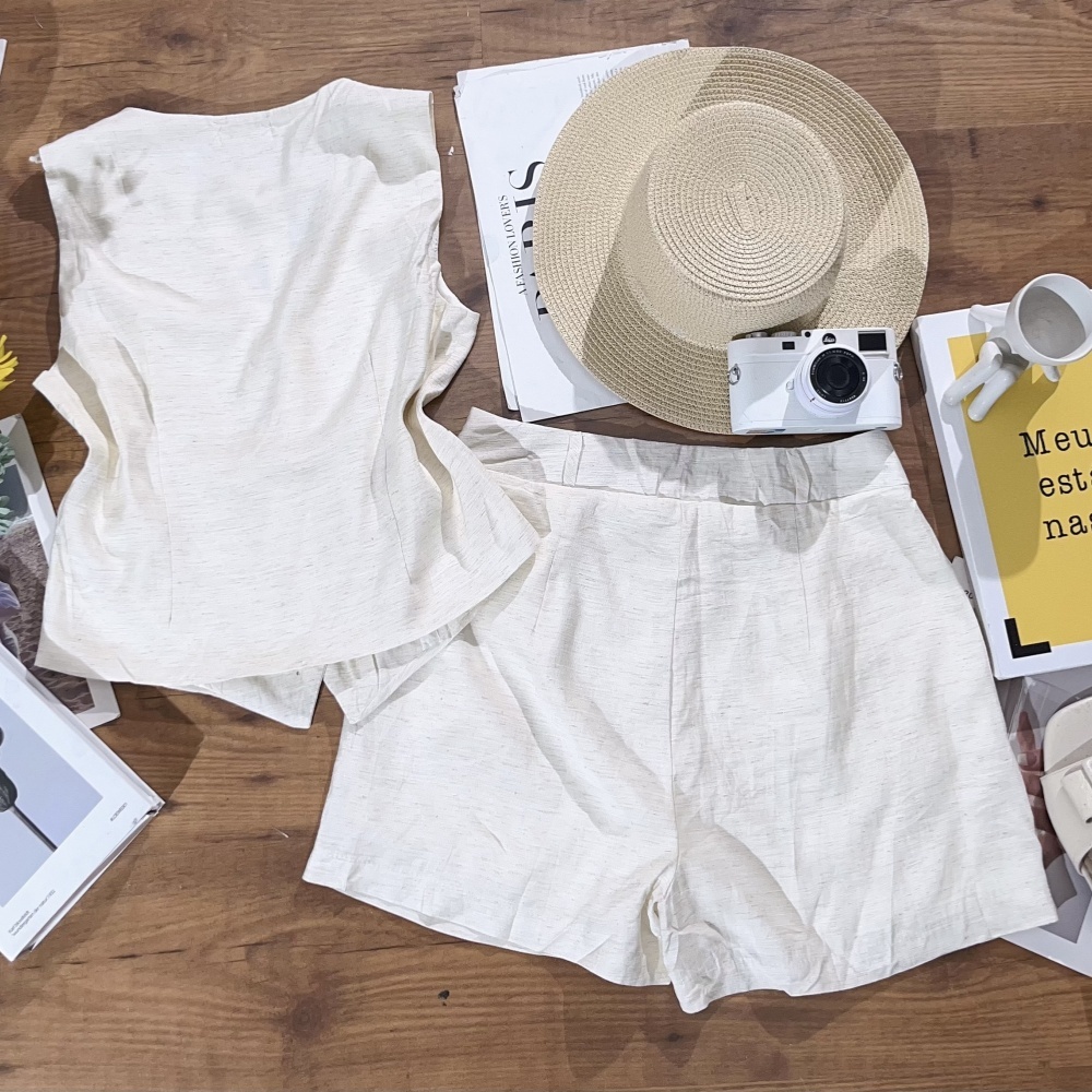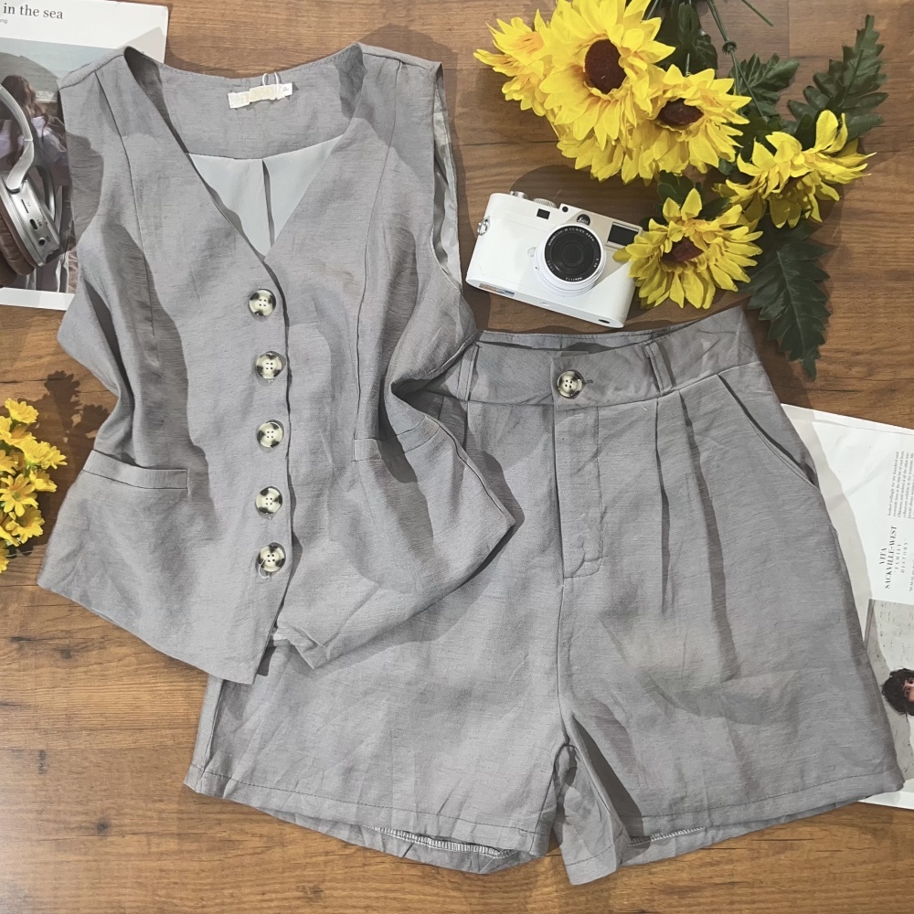 Conjunto Femenino Alfaiateria Colete e Short de Botoes na Frente Simples e Elegante