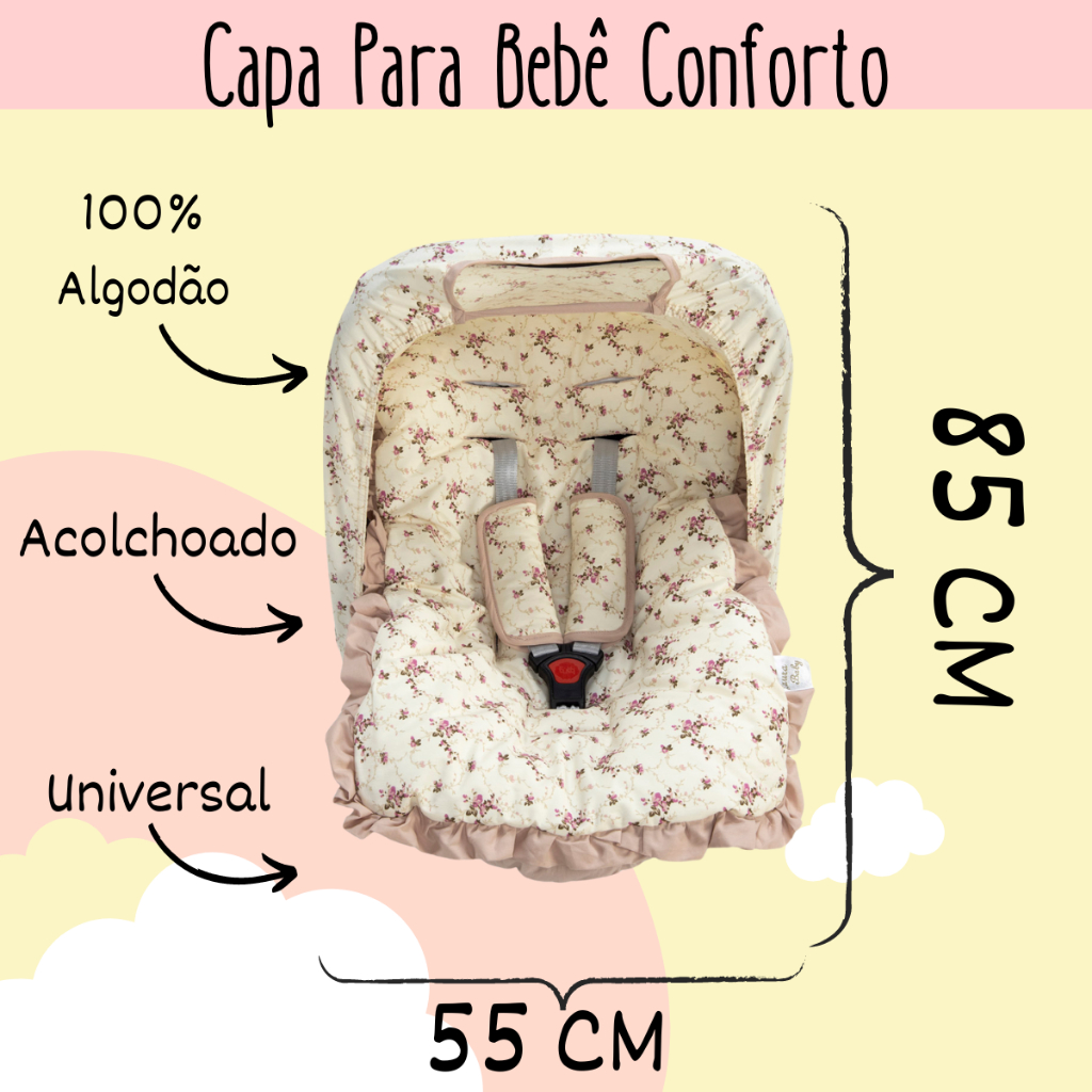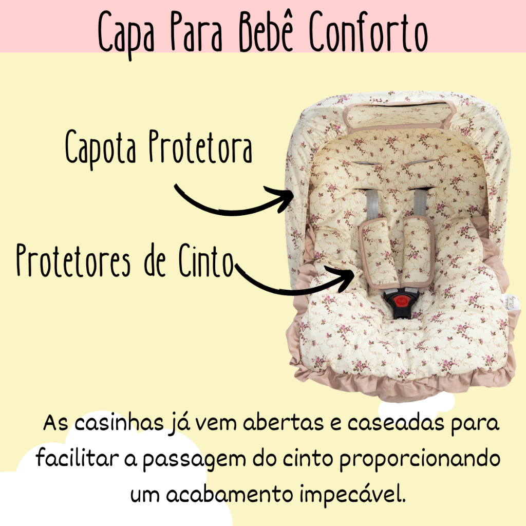 Kit 4 Peças Capa Bebê Conforto Menino Menina Capota protetora Protetores de Cinto Tecido Algodão Várias Estampas
