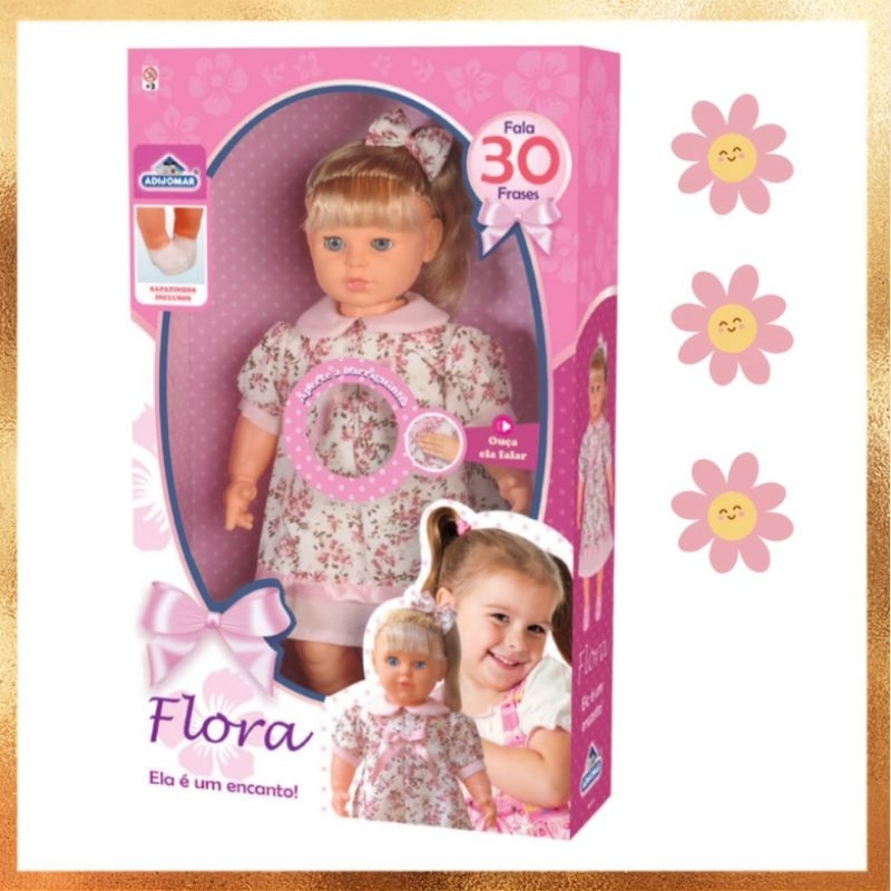 Boneca Grande que Fala 30 Frases e com Olhos Móveis Flora Original - Adijomar