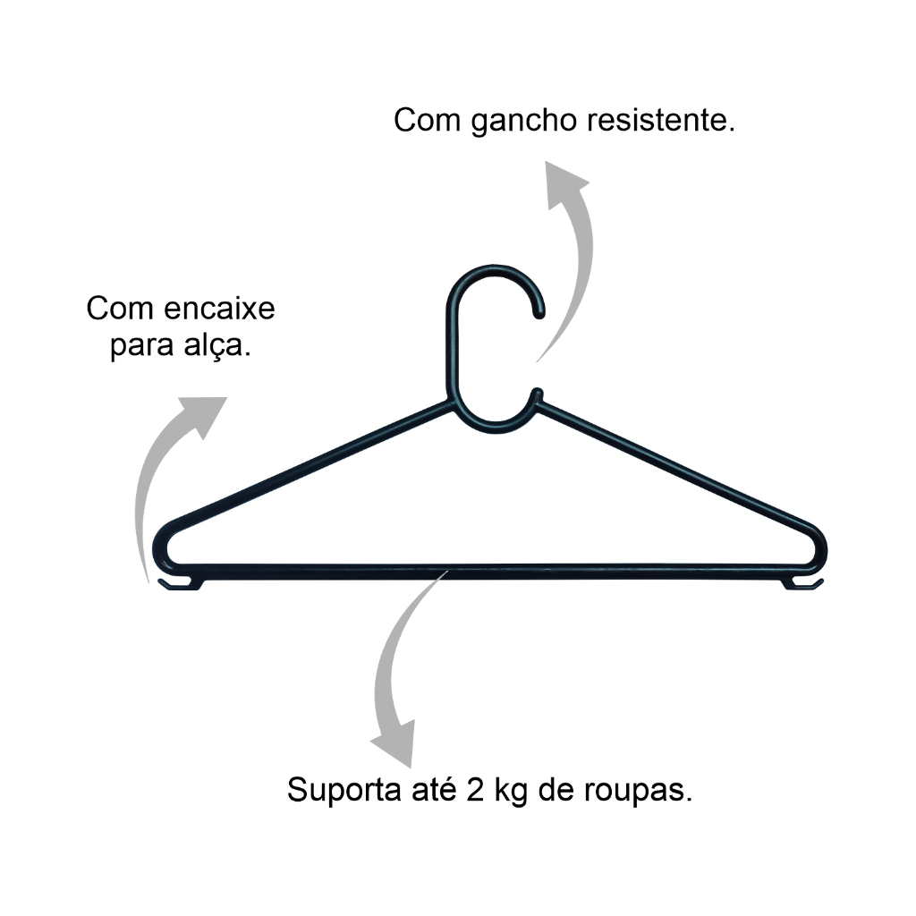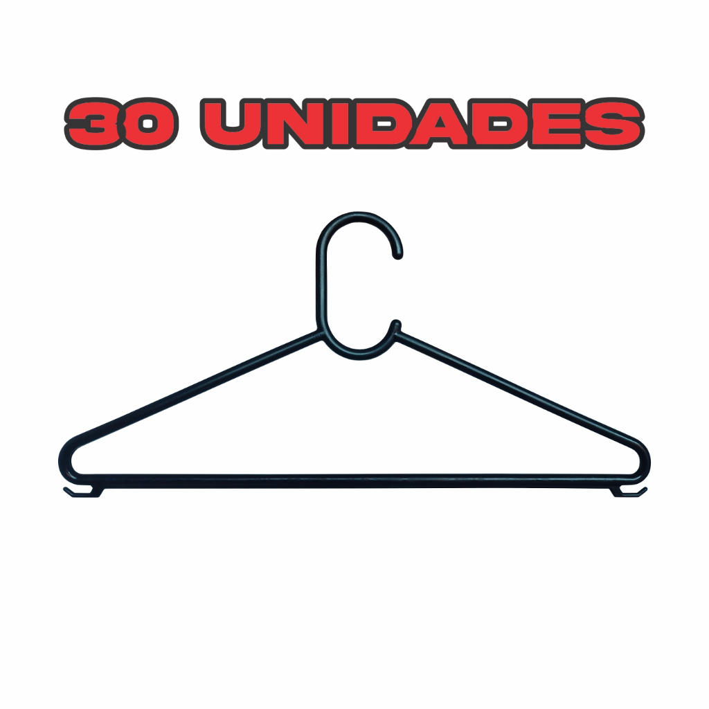 Cabide de Roupa Adulto Plástico Reforçado Organizador Preto Barato kit com 30 peças
