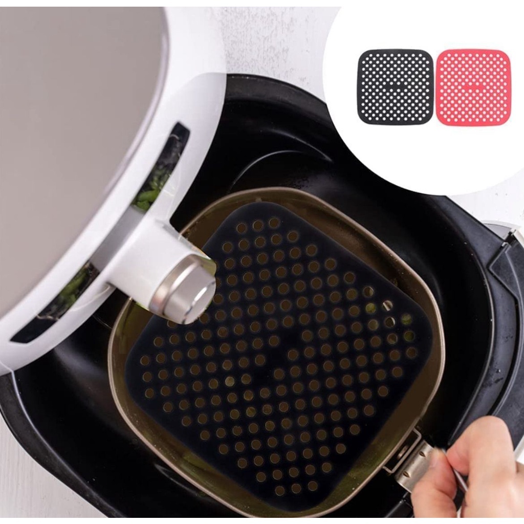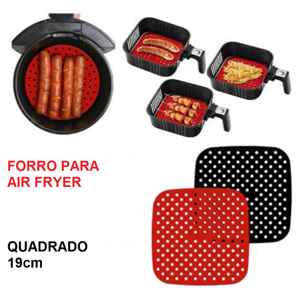Forro Tapete em Silicone Para Air Fryer 19cm Fritadeira Elétrica QUADRADO Multiuso Universal Vermelho Preto