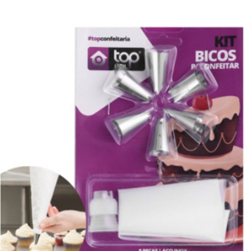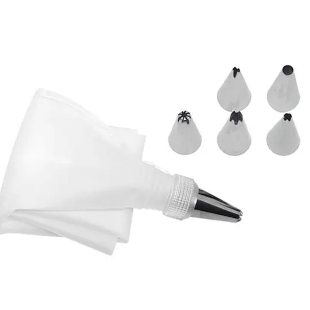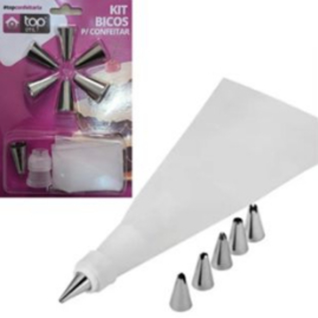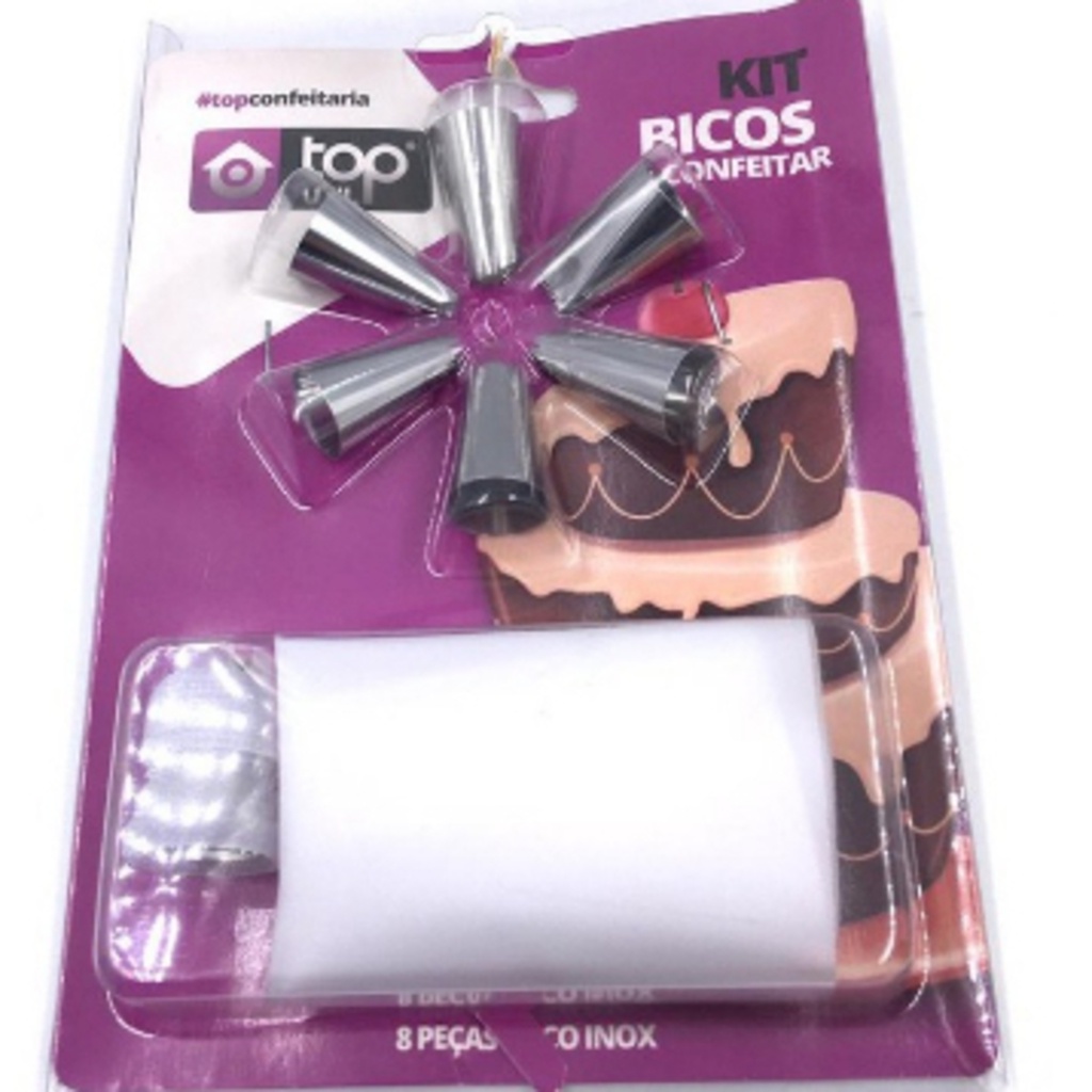 Kit Confeiteiro com 7 Bicos de Inox e 1 Saco de Confeita 26CM Para Bolos e Doces 8 Peças Universal