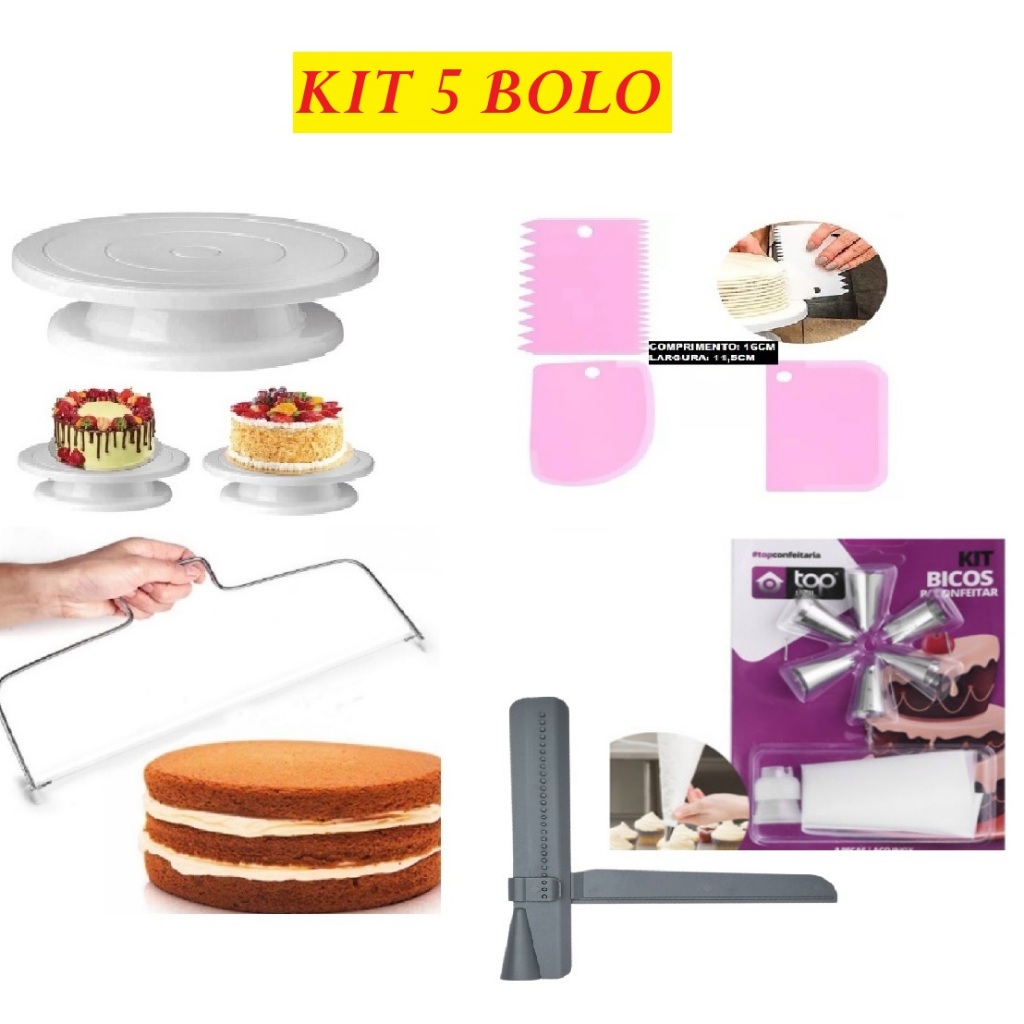 KIT Bolo Base Giratória Nivelador Fatiador E Conjunto Com 4 Fatiadores Profissional Para Confeiteiro