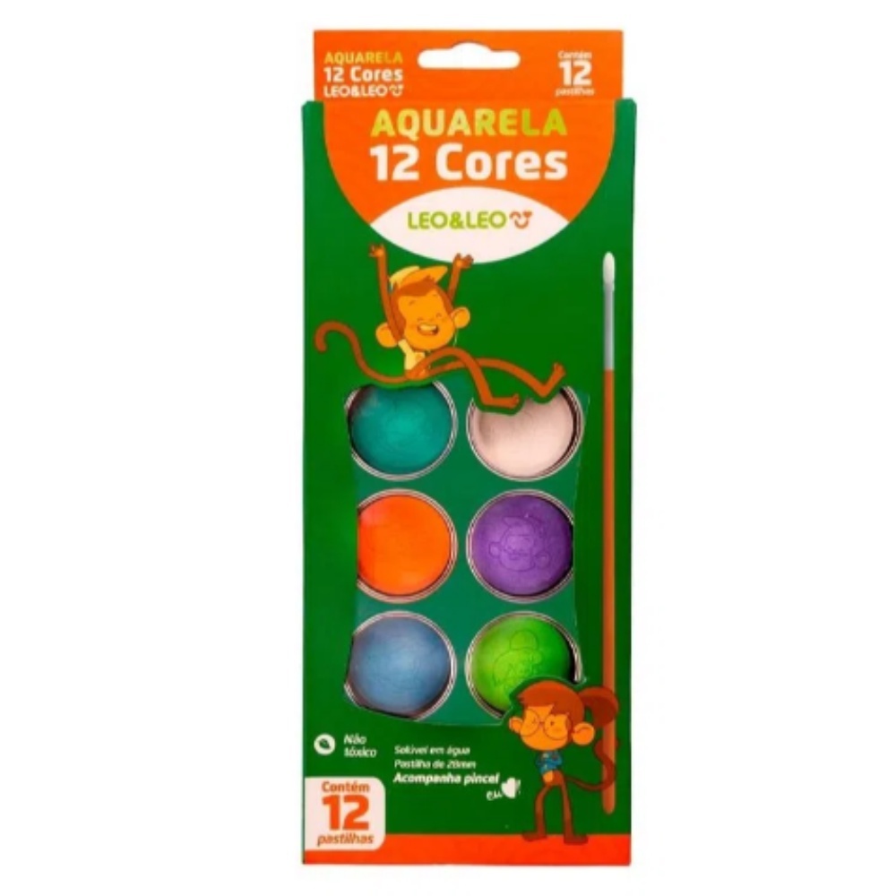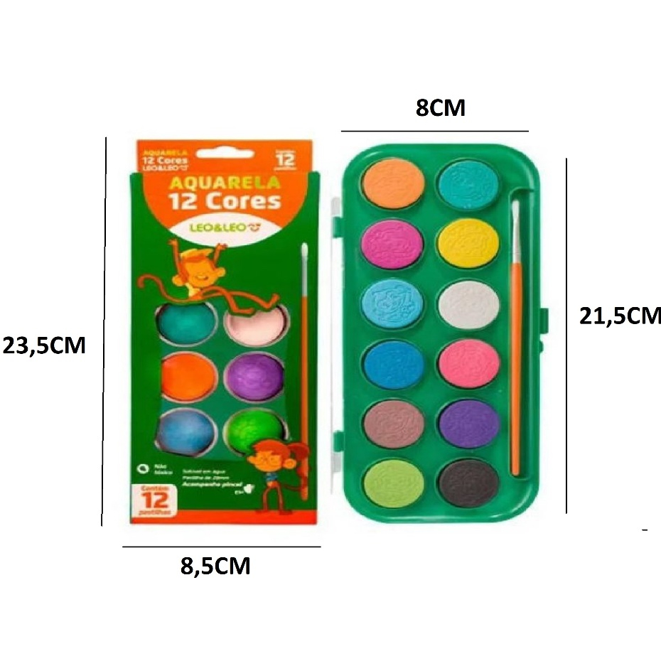 LeoLeo Pintura Aquarela 12 Cores Artigo de Artes Papel Cartolina Papel Cartão Papelaria Escolar