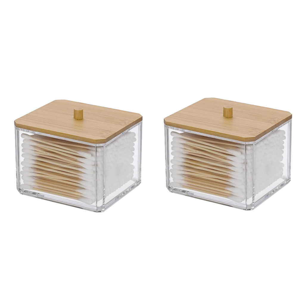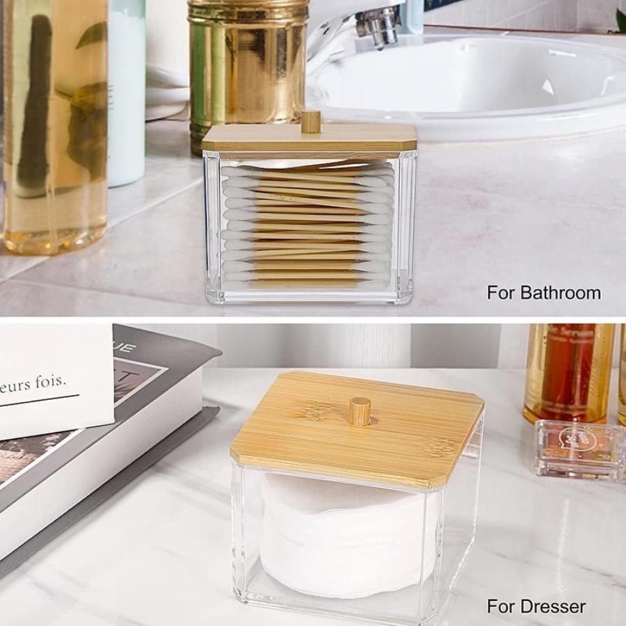 Organizado Pote Acrílico Cotonetes Tampa Bambu Para Guardar Algodão DIsco Removedor De Maquiagem E Outros Itens Pequenos