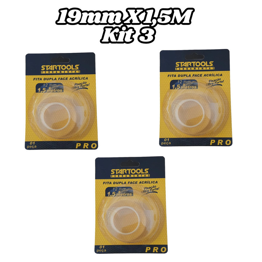 Fita Dupla Super Fixação 19mmx2m Ou 12mmx1,5m Startools Ultra Forte Acrílica Transparente Multiuso