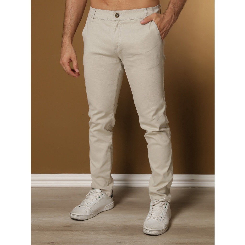 Calças Sarja Alfaiataria Esporte Fino Bolso Faca Bolso Embutido Masculino