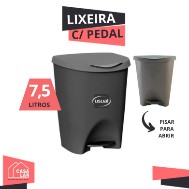 Lixeira Com Pedal Usual Tampa 7,5 Litros Cozinha Banheiro Escritório