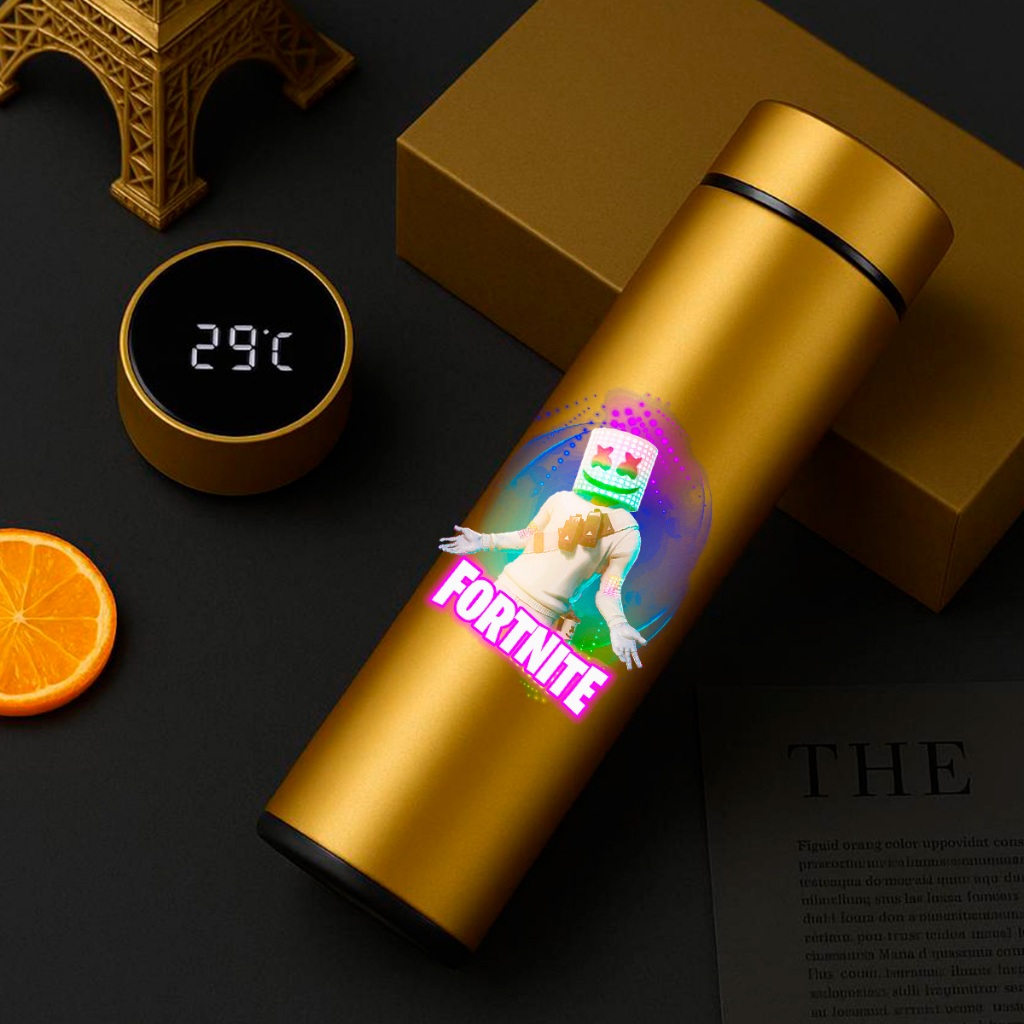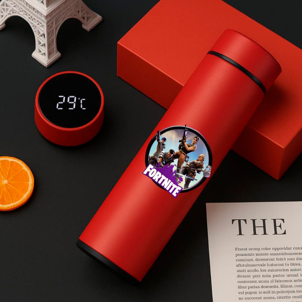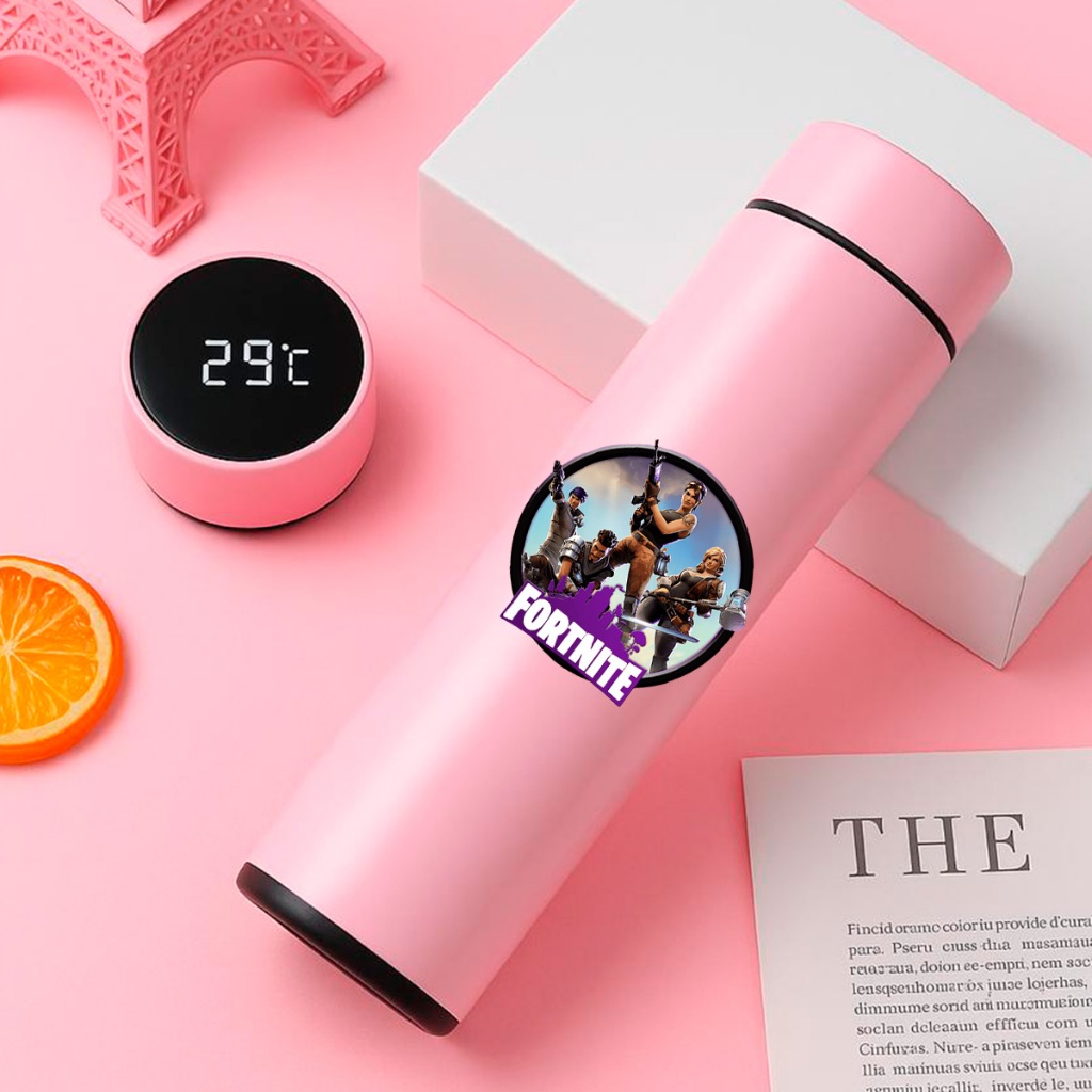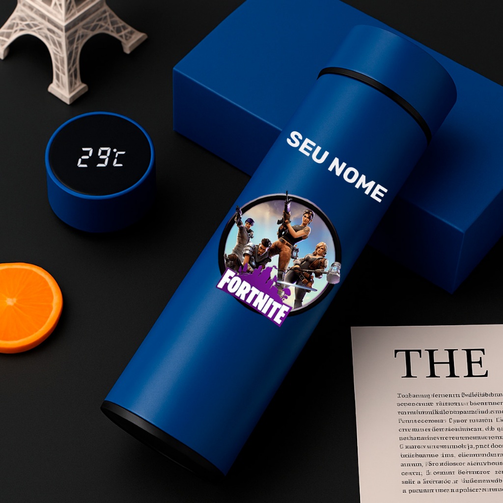 Garrafa Térmica Inox Fortnite 500ml com Termômetro Digital LED Academia Bebida Quente Fria