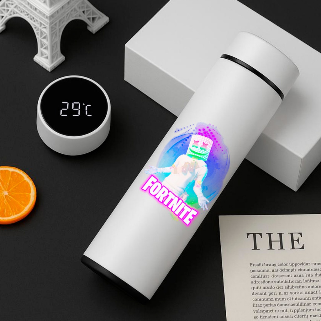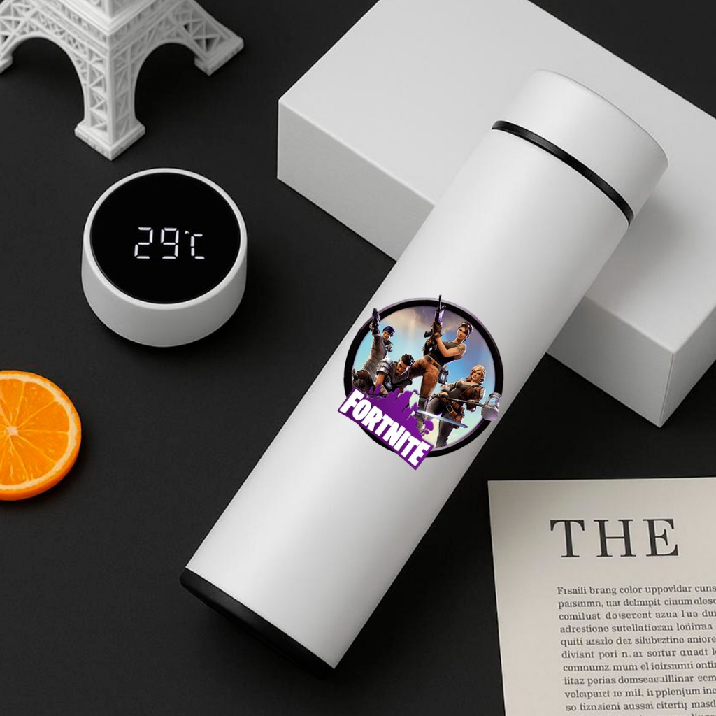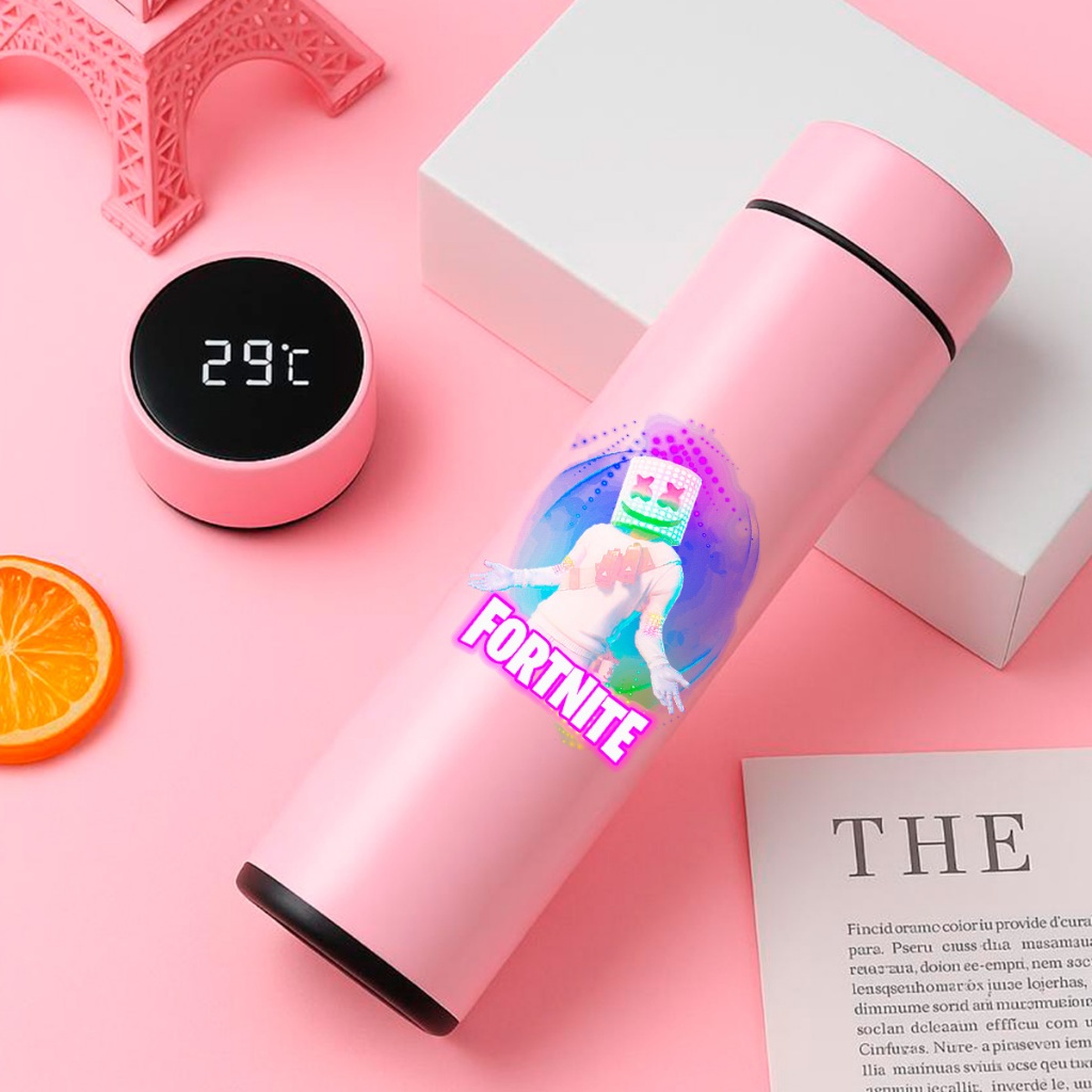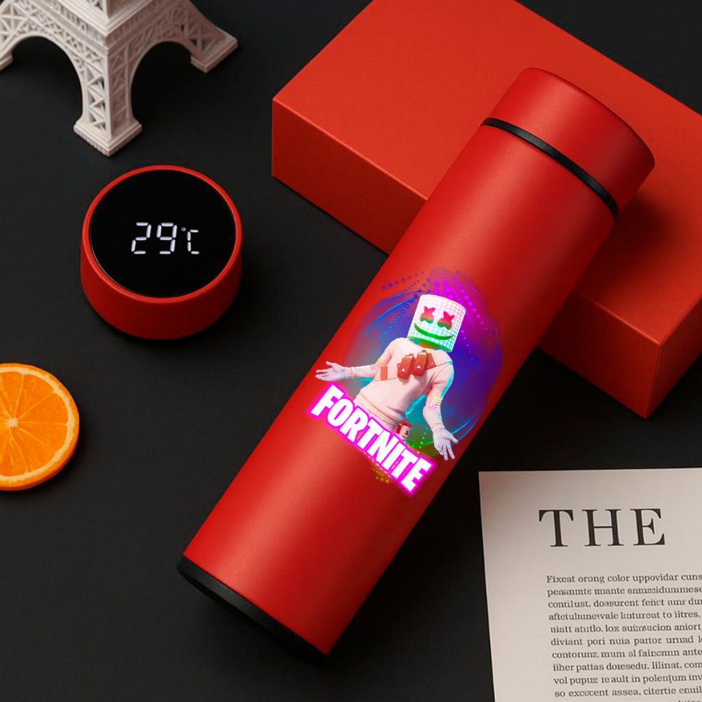 Garrafa Térmica Inox Fortnite 500ml com Termômetro Digital LED Academia Bebida Quente Fria