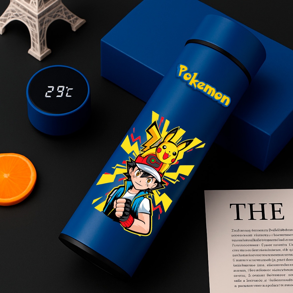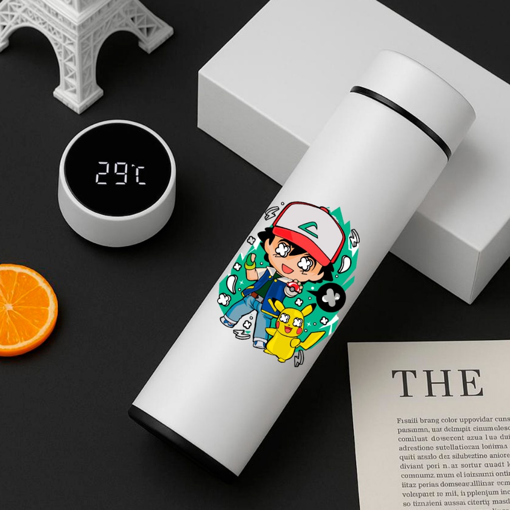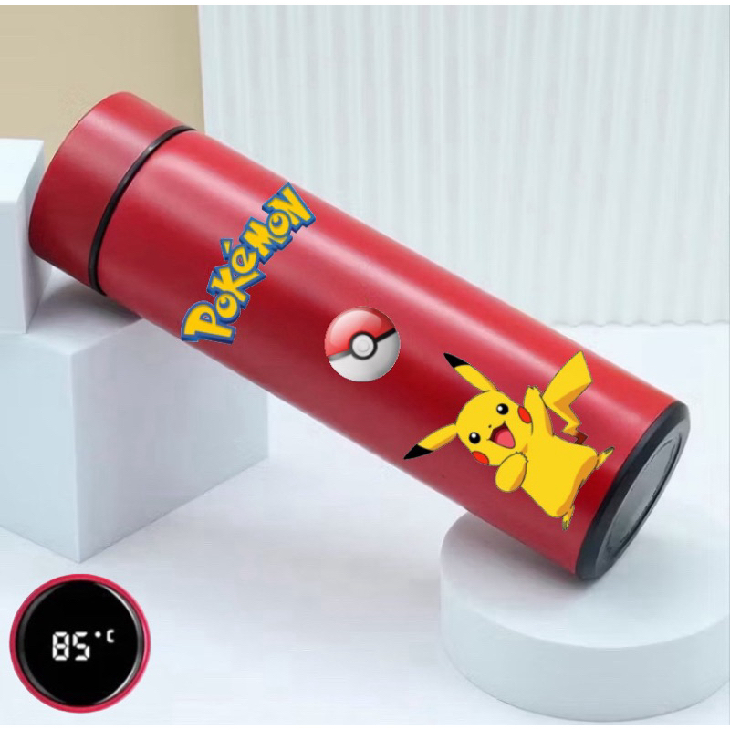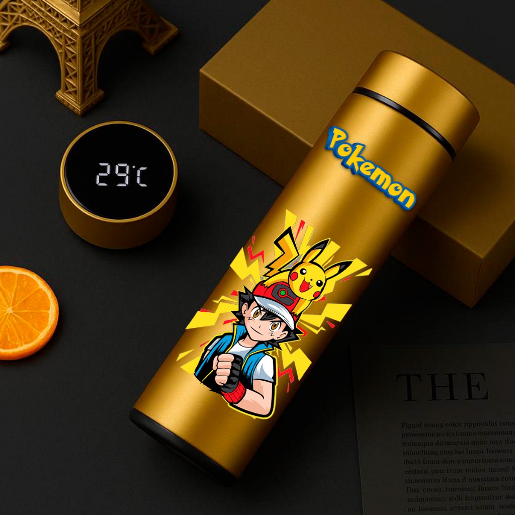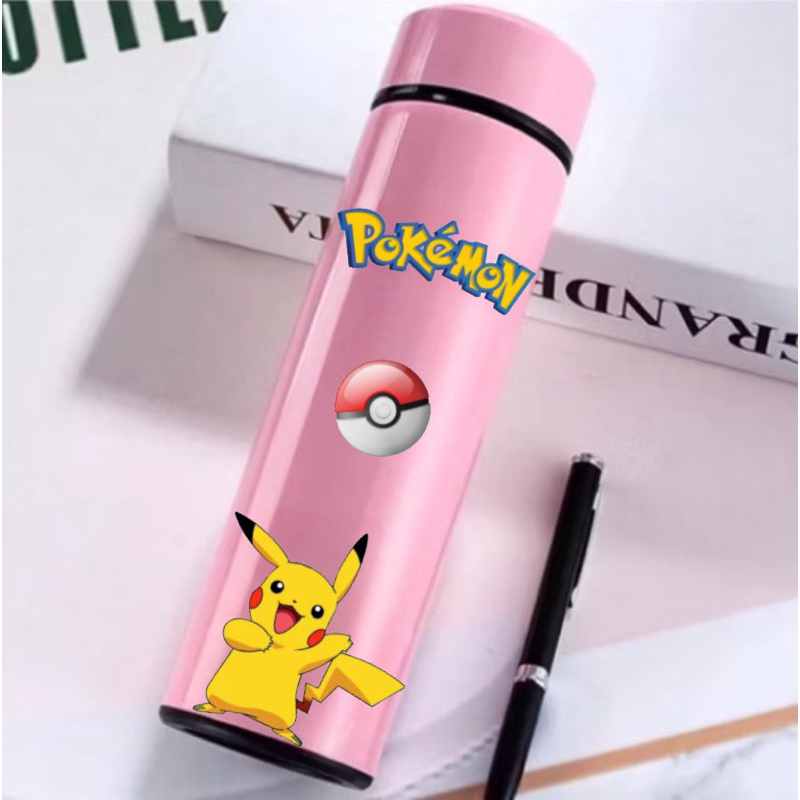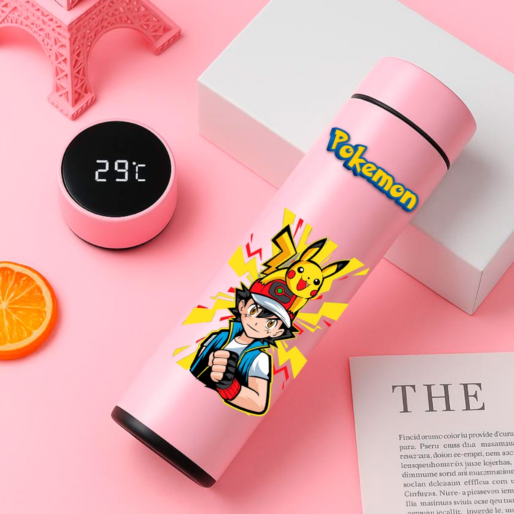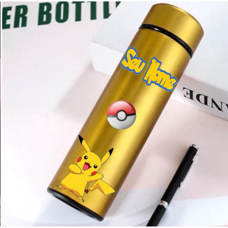 GARRAFA TÉRMICA POKÉMON PIKACHU COM TERMÔMETRO DIGITAL INTELIGENTE 01 500ML INOX Anime