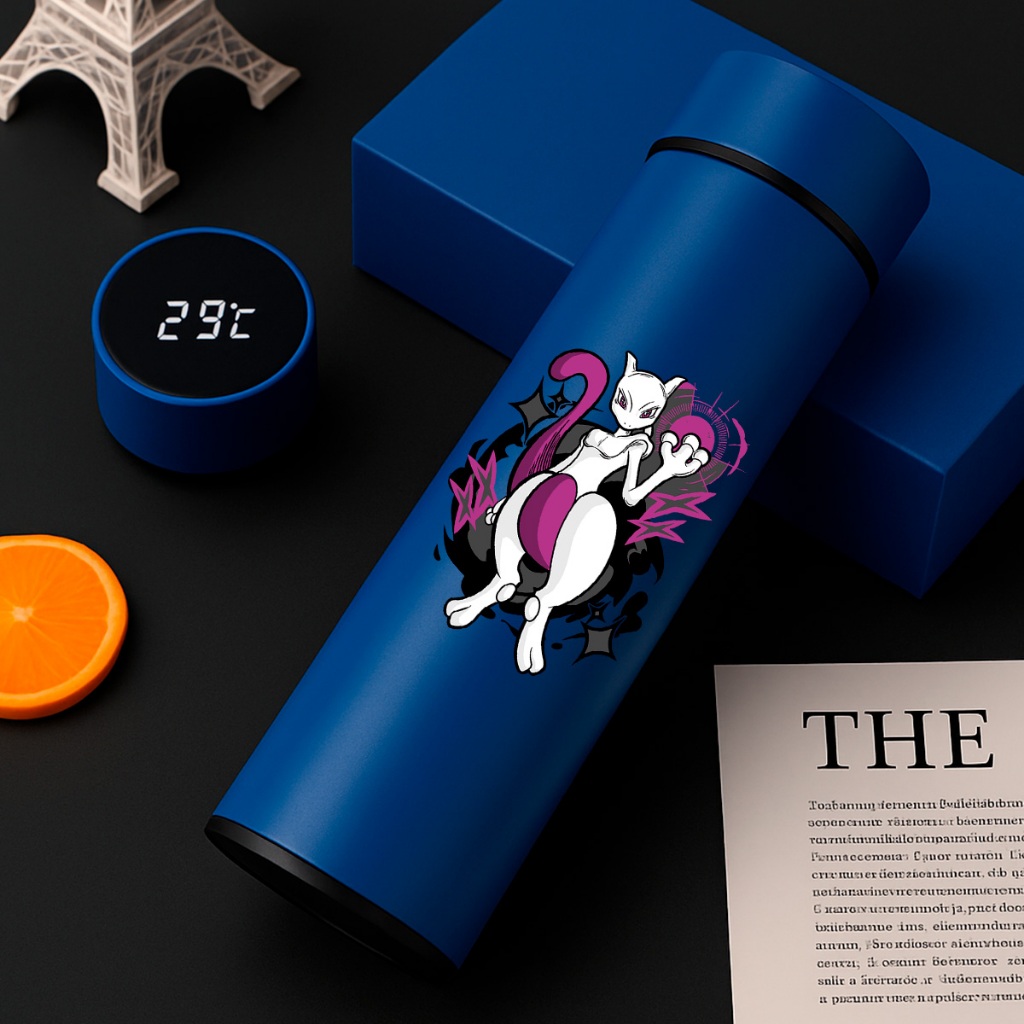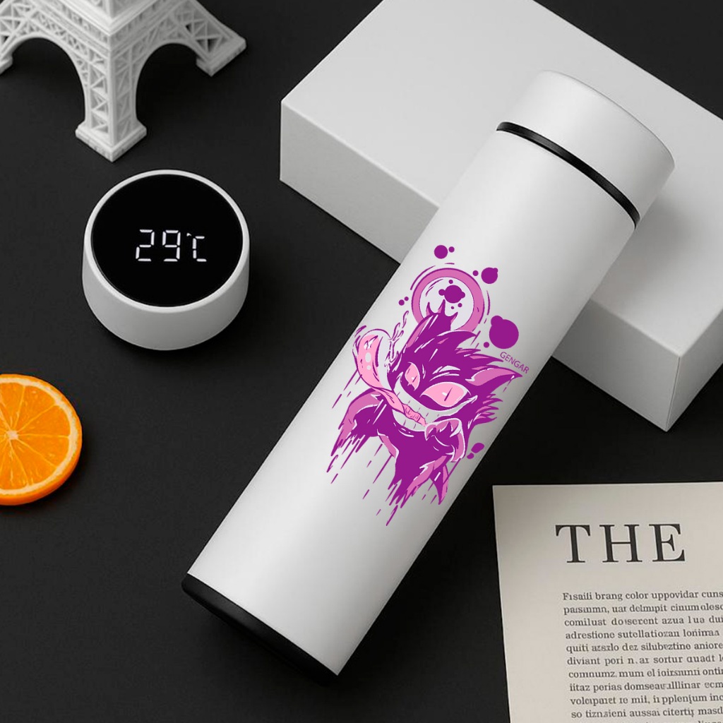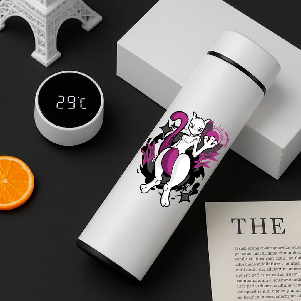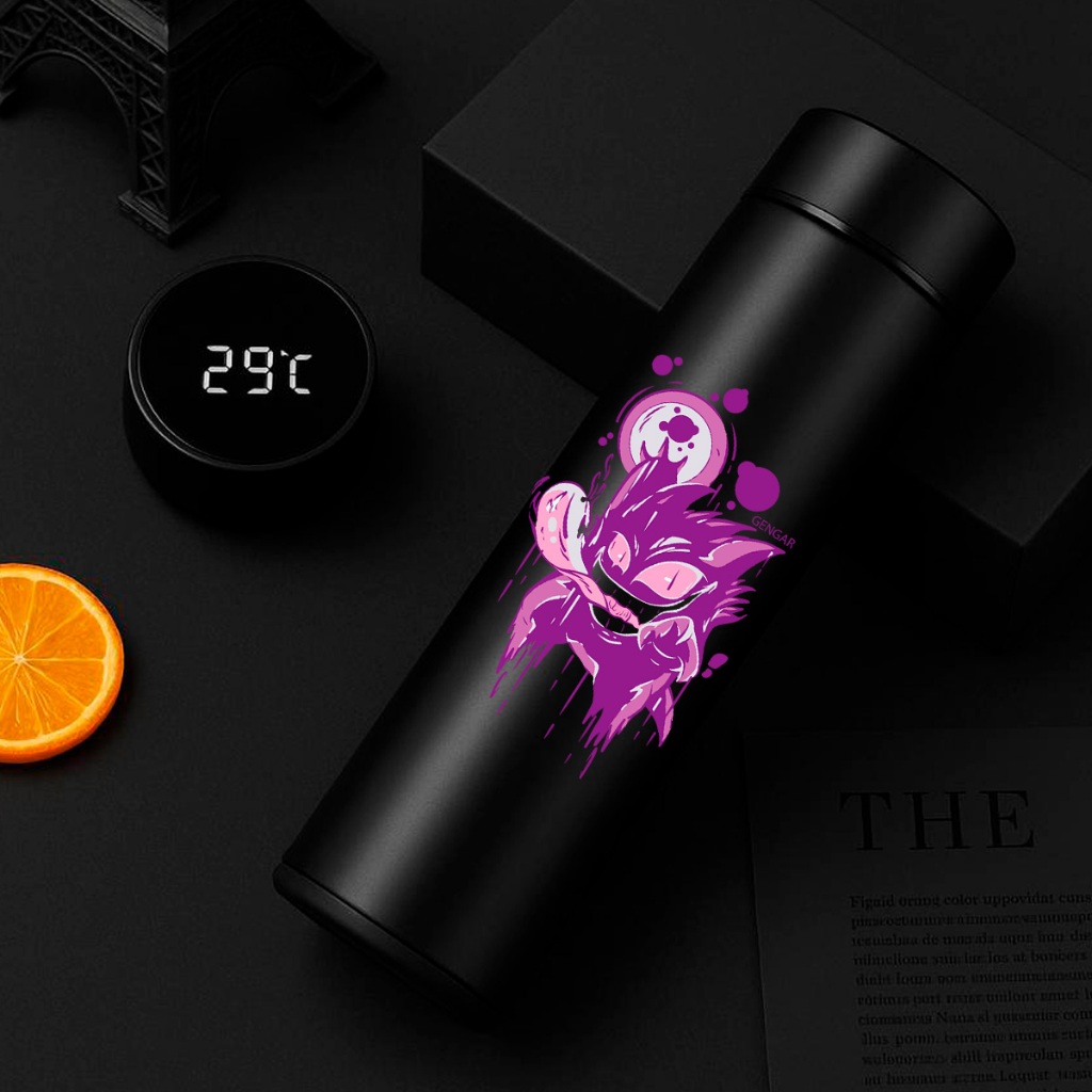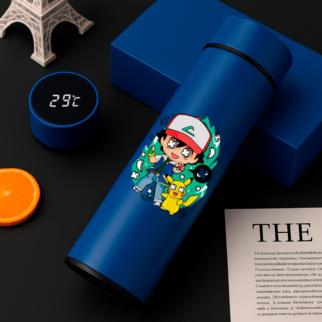 GARRAFA TÉRMICA POKÉMON PIKACHU COM TERMÔMETRO DIGITAL INTELIGENTE 01 500ML INOX Anime