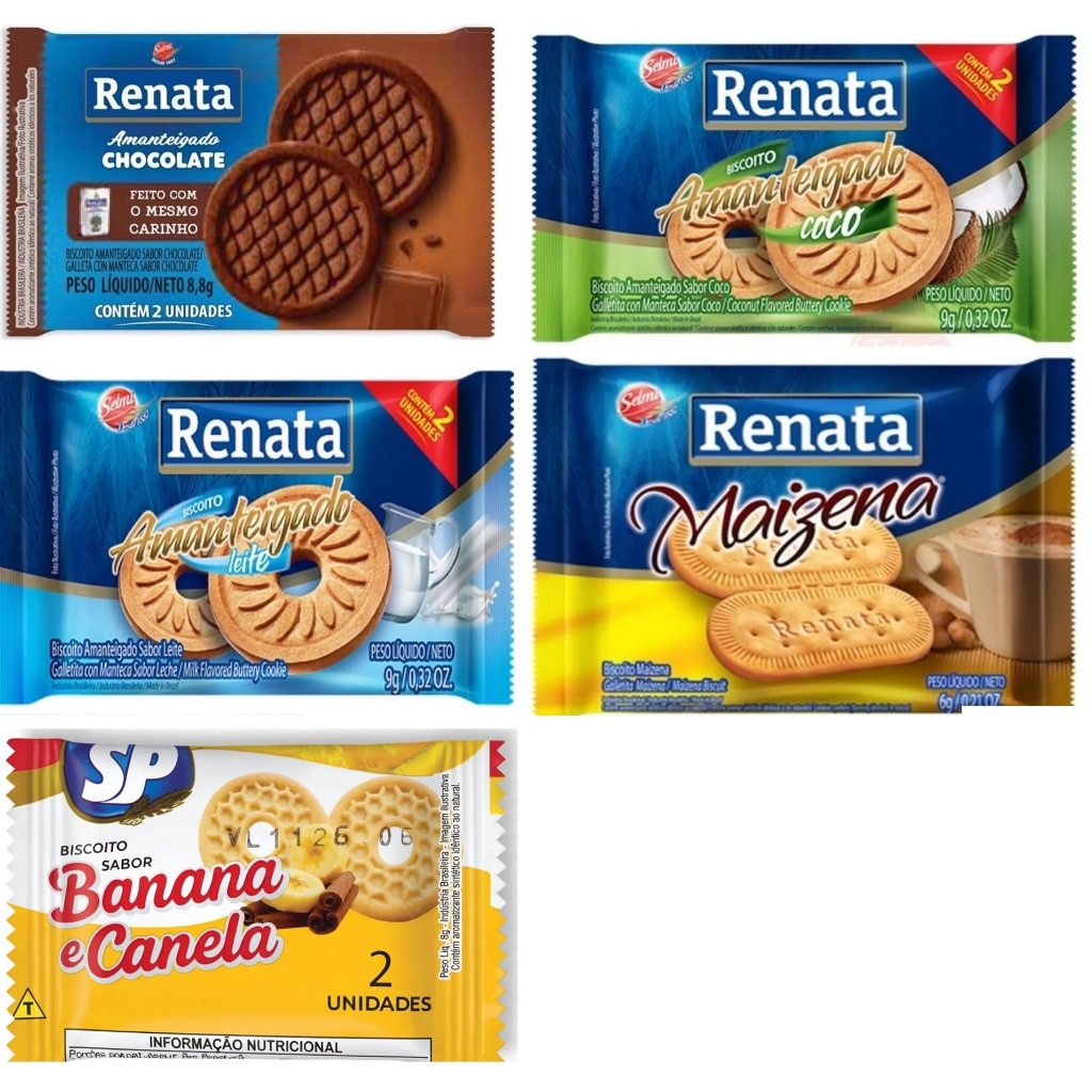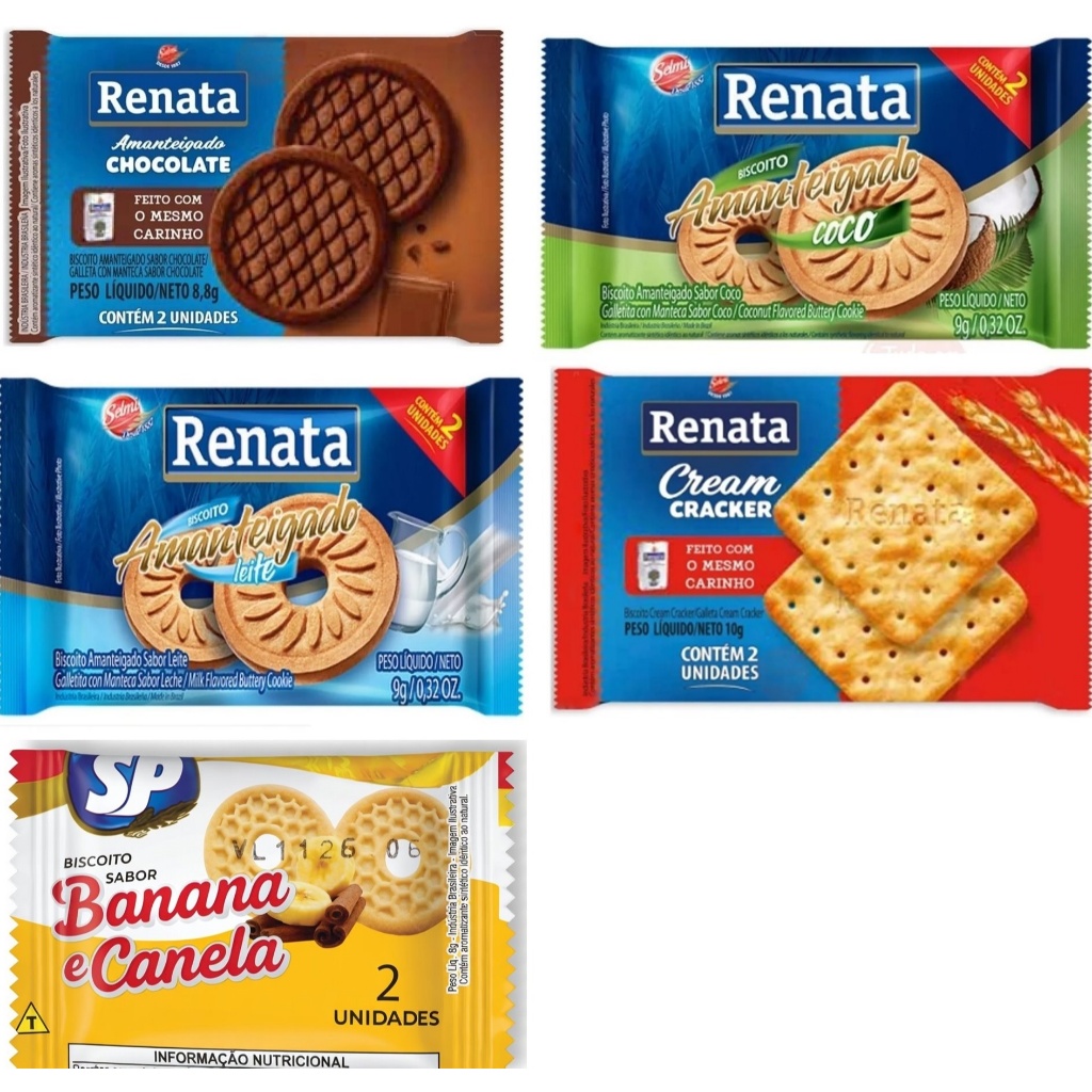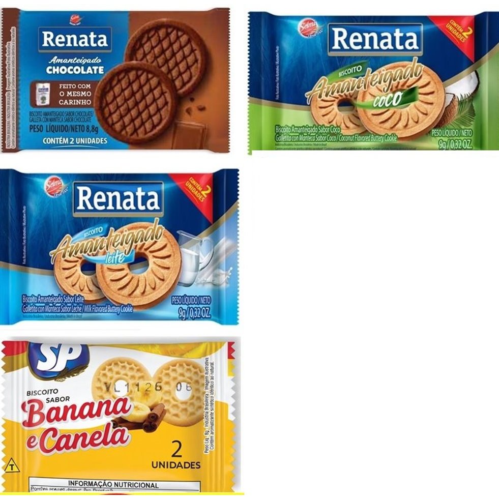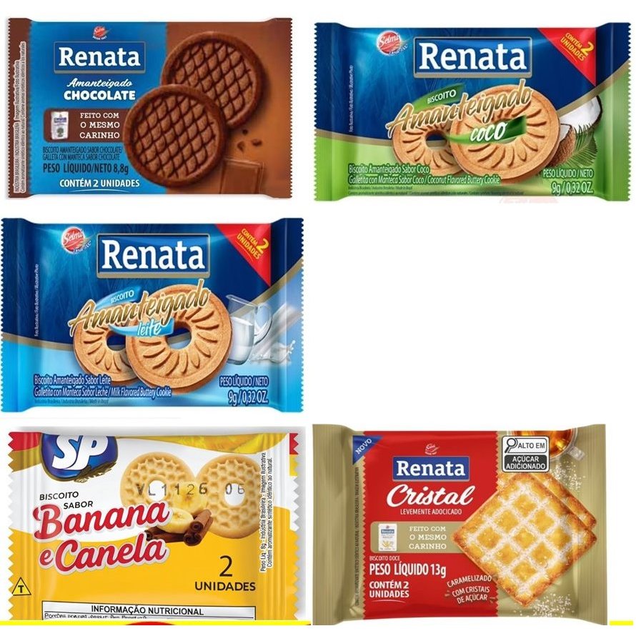 100 Sachês De Biscoito Renata Sabores Sortidos Chocolate Leite Coco Banana Capuccino